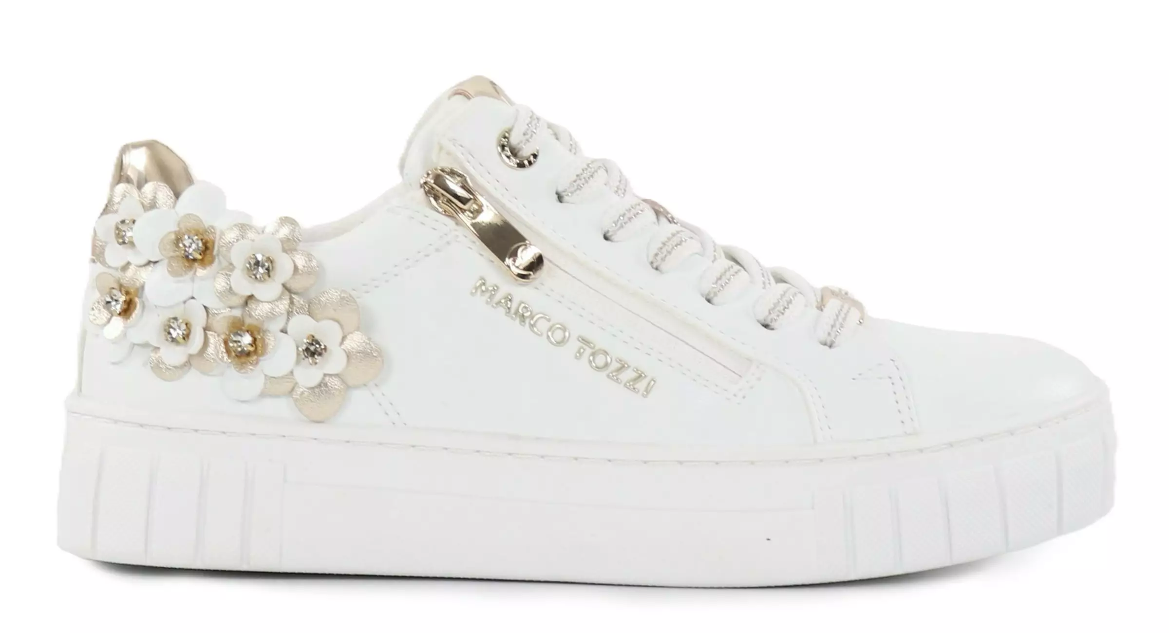 Marco Tozzi Damen Sneakers mit Blumenverzierung 23720-46 white comb
