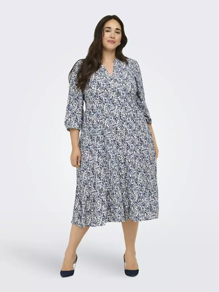 Only Carmakoma gemustertes Plus-Size Kleid CARMILANA 7/8 in cornet blue/jade flow
