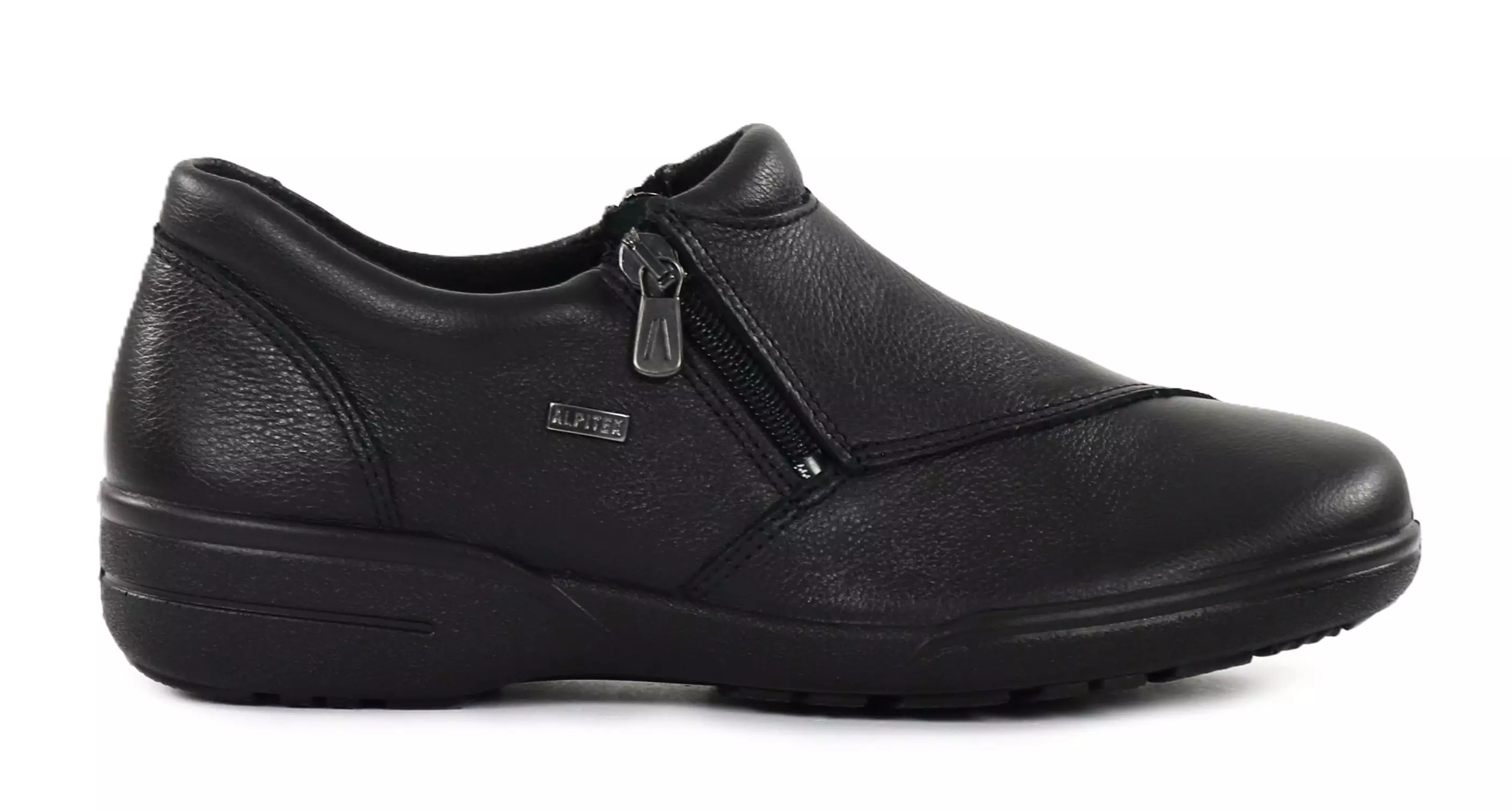 Bequeme und hochwertige Alpina-Walkschuhe, hergestellt aus echtem Leder. Zwei Reißverschlüsse erleichtern das Anziehen, und die flexible Konstruktion sorgt für angenehmen Tragekomfort. Die Alpitex-Beschichtung bietet zusätzlichen Schutz vor Regen, Schnee und Kälte – eine hervorragende Wahl für wechselhafte Wetterbedingungen.