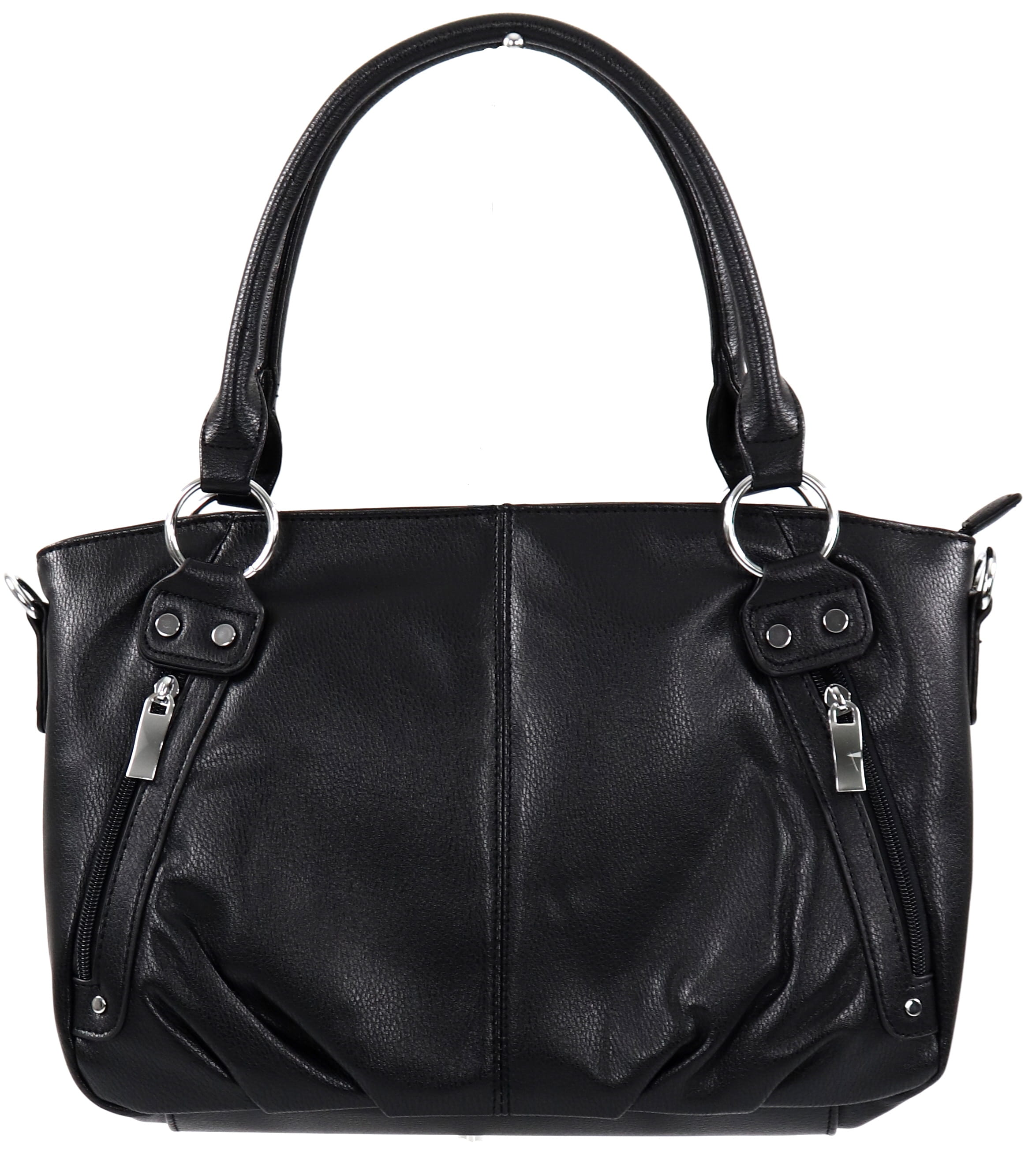 - Seitliche Reißverschlusstasche und zwei offene Taschen