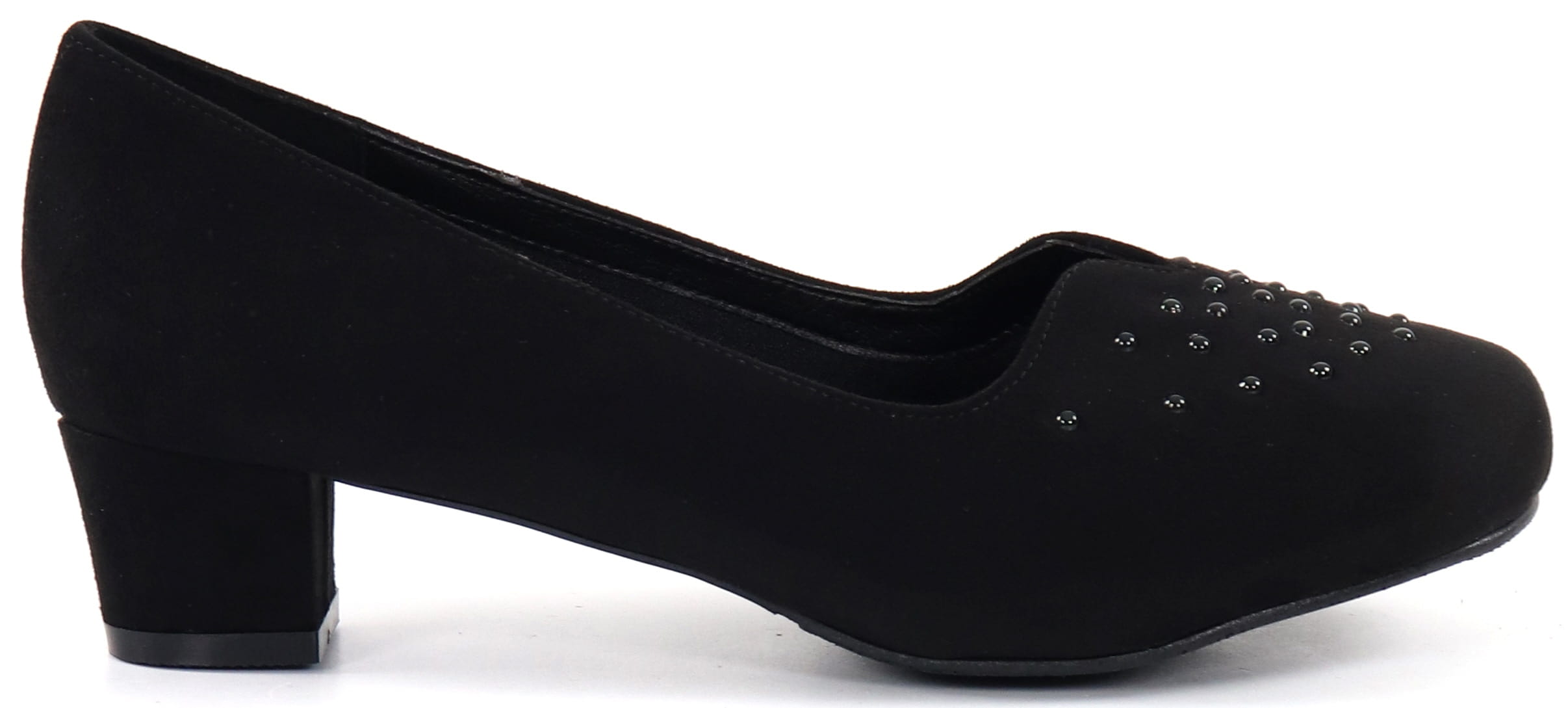- Schwarze Perlen als Dekoration auf der Schuhoberseite