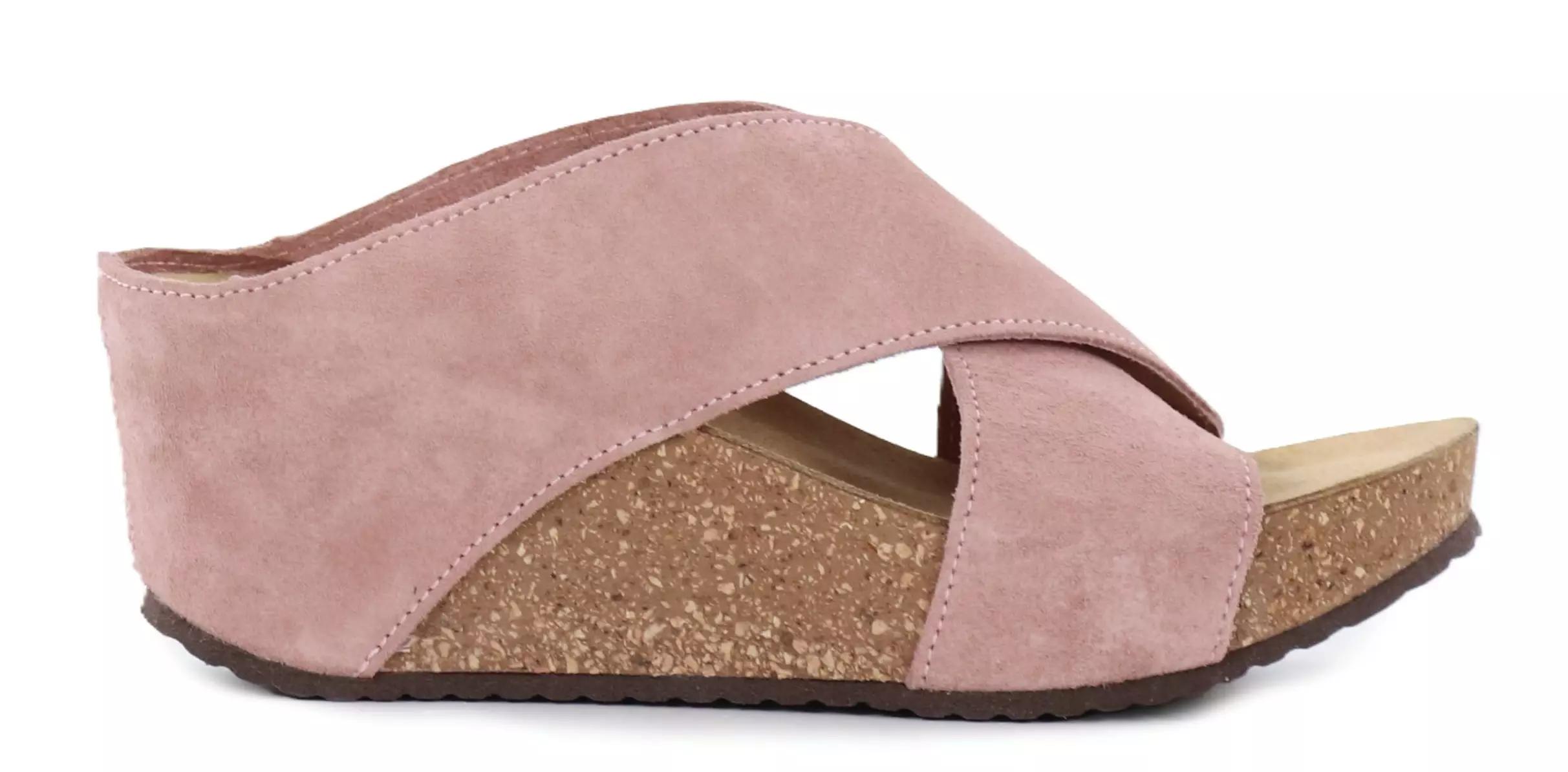 Die rosafarbenen Pantoletten von Copenhagen Shoes bringen Trend in jedes Outfit! Echt Wildleder, Keilabsatz und Korksohlen vereinen Komfort und Stil. Diese Schuhe eignen sich perfekt für den Alltag sowie für entspannte Feierlichkeiten!
