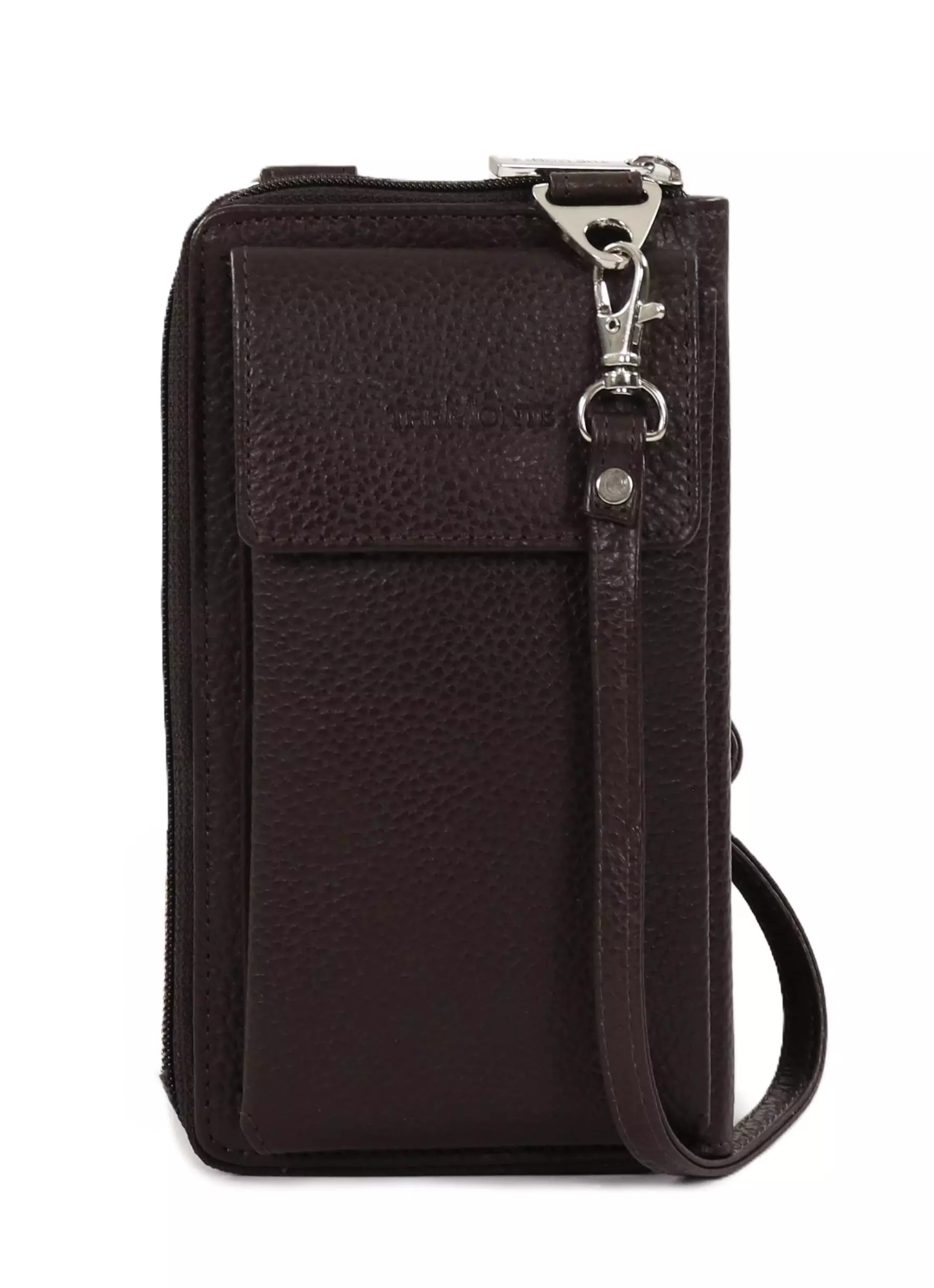 Die Monte Handy-Tasche/Geldbörse ist aus echtem Leder gefertigt und eignet sich perfekt für jede Gelegenheit. Der abnehmbare Schulterriemen ermöglicht eine einfache Umwandlung von einer Schultertasche in eine stilvolle Geldbörse.