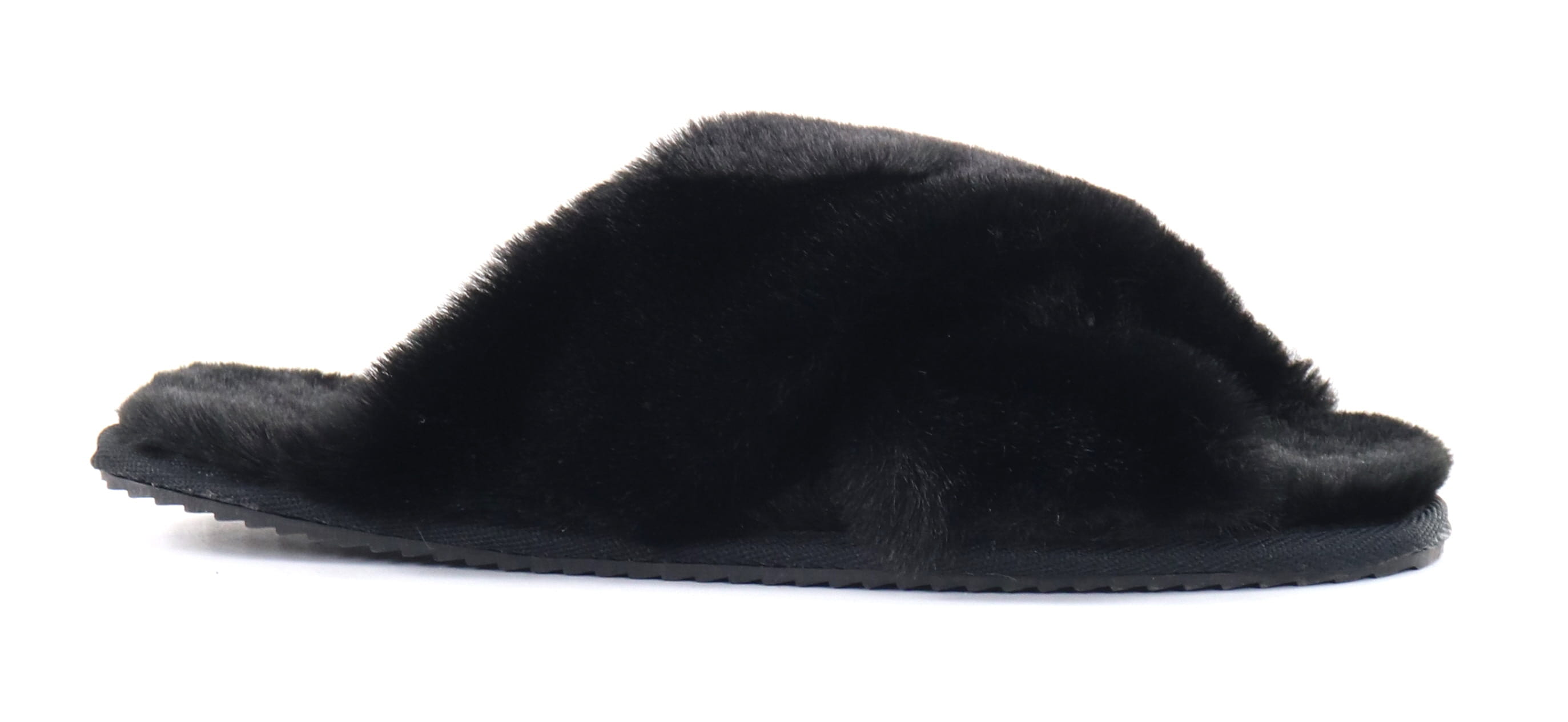 Niedrige Slip-In-Sandalen aus Kunstfell.
