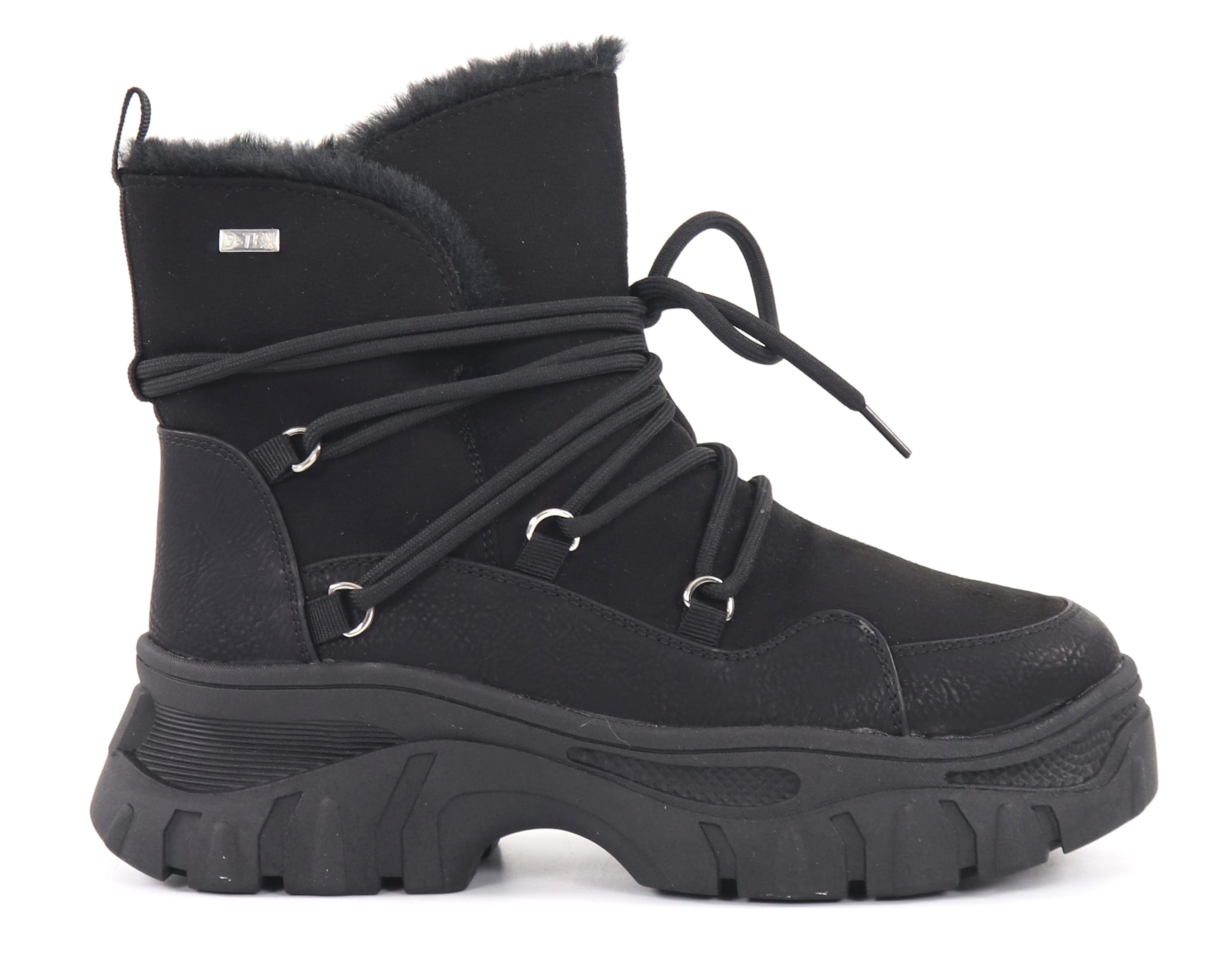 Wasserdichte Stiefeletten aus synthetischem Material mit warmem Futter.
