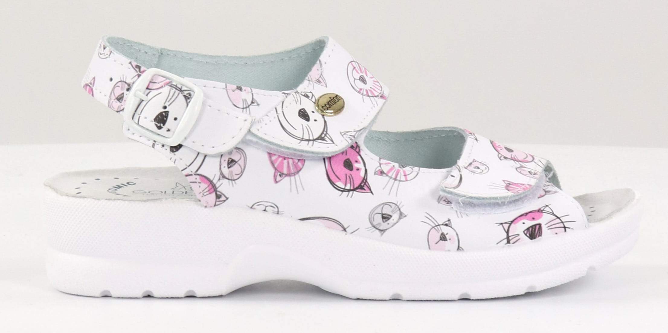 Ledersandalen mit Katzenmuster und 3 verstellbaren Riemen.