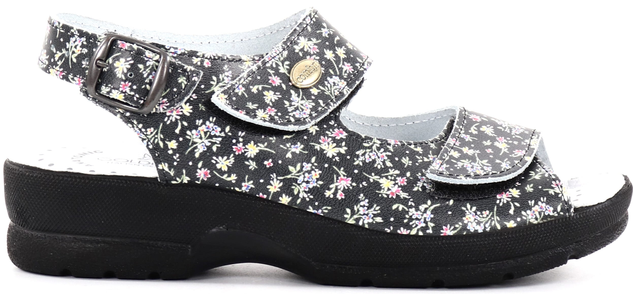 Leder-Sandalen mit Blumenmuster und 3 verstellbaren Riemen.