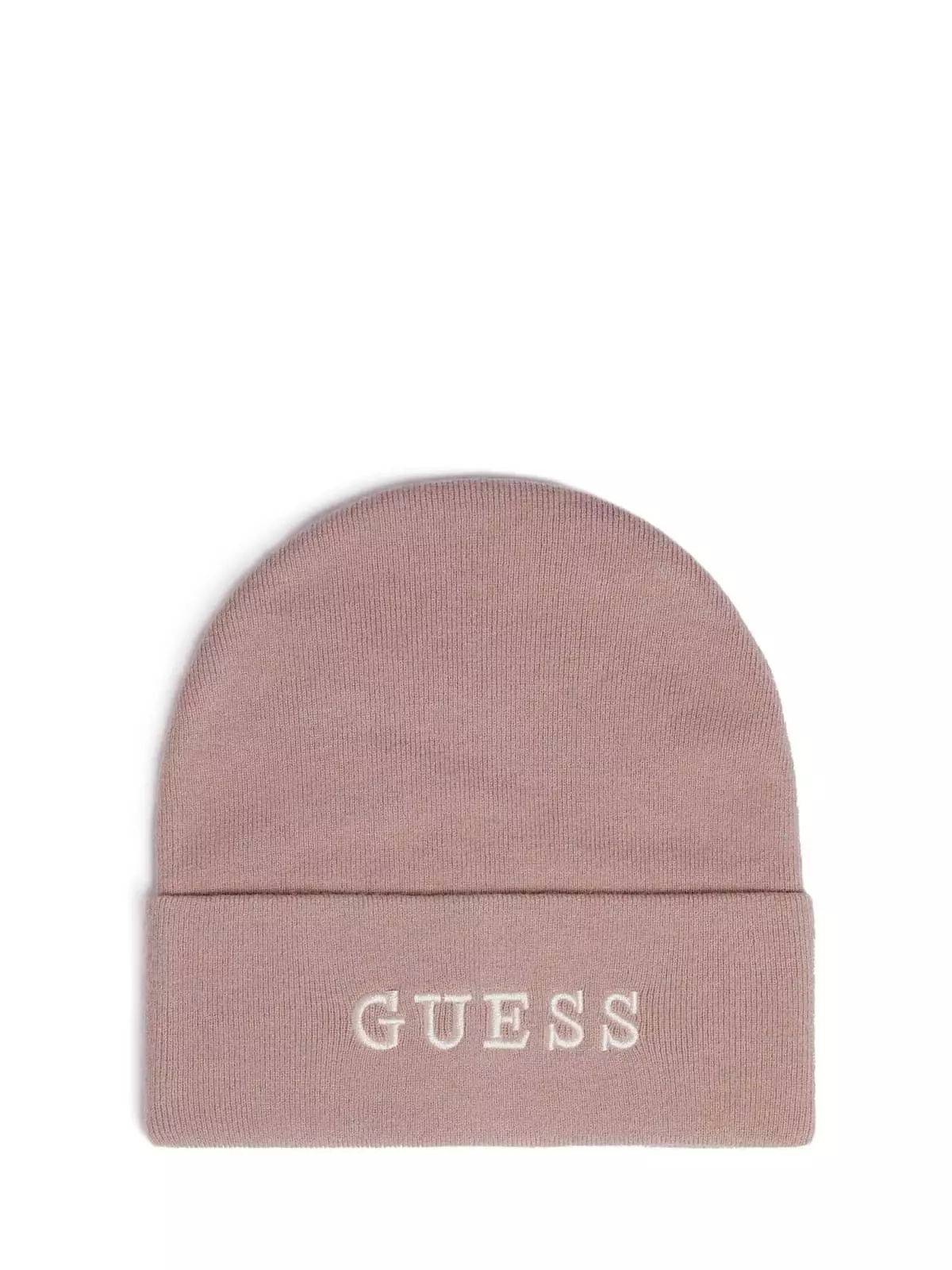 Dehnbare Strickmütze. Gesticktes Guess-Logo auf der Vorderseite.
