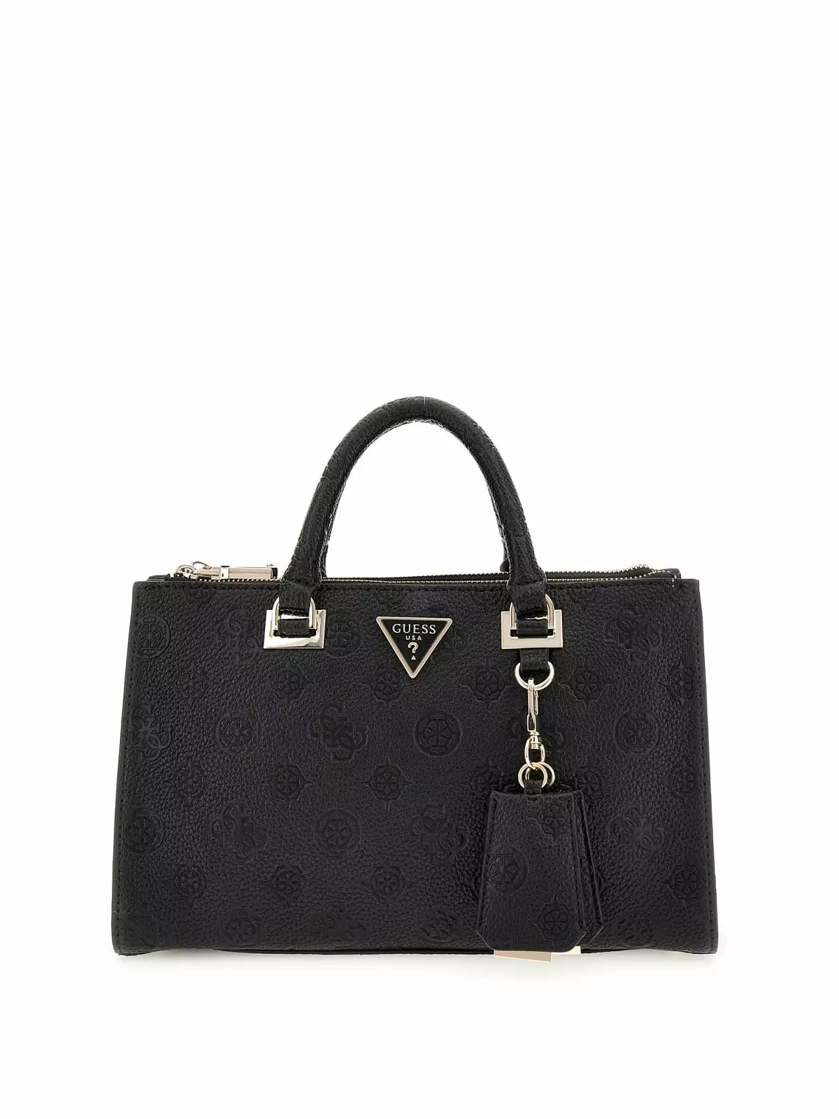Eine schwarze Guess-Tasche mit Prägung, dank mehrere Taschen bleiben Ihre Dinge ordentlich organisiert!