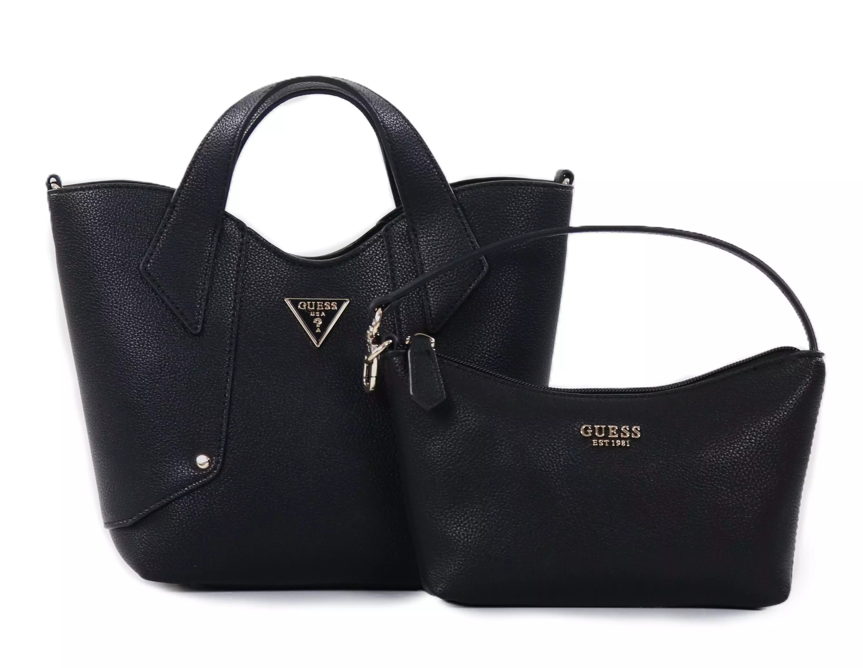 Elegante Guess-Tasche mit einem separaten kleinen Täschchen im Inneren. Du kannst sie nutzen, um in der größeren Tasche deine Sachen ordentlich zu halten oder sie als stilvolle kleine Umhängetasche tragen. Eine vielseitige Lösung für den Alltag und abendliche Anlässe!