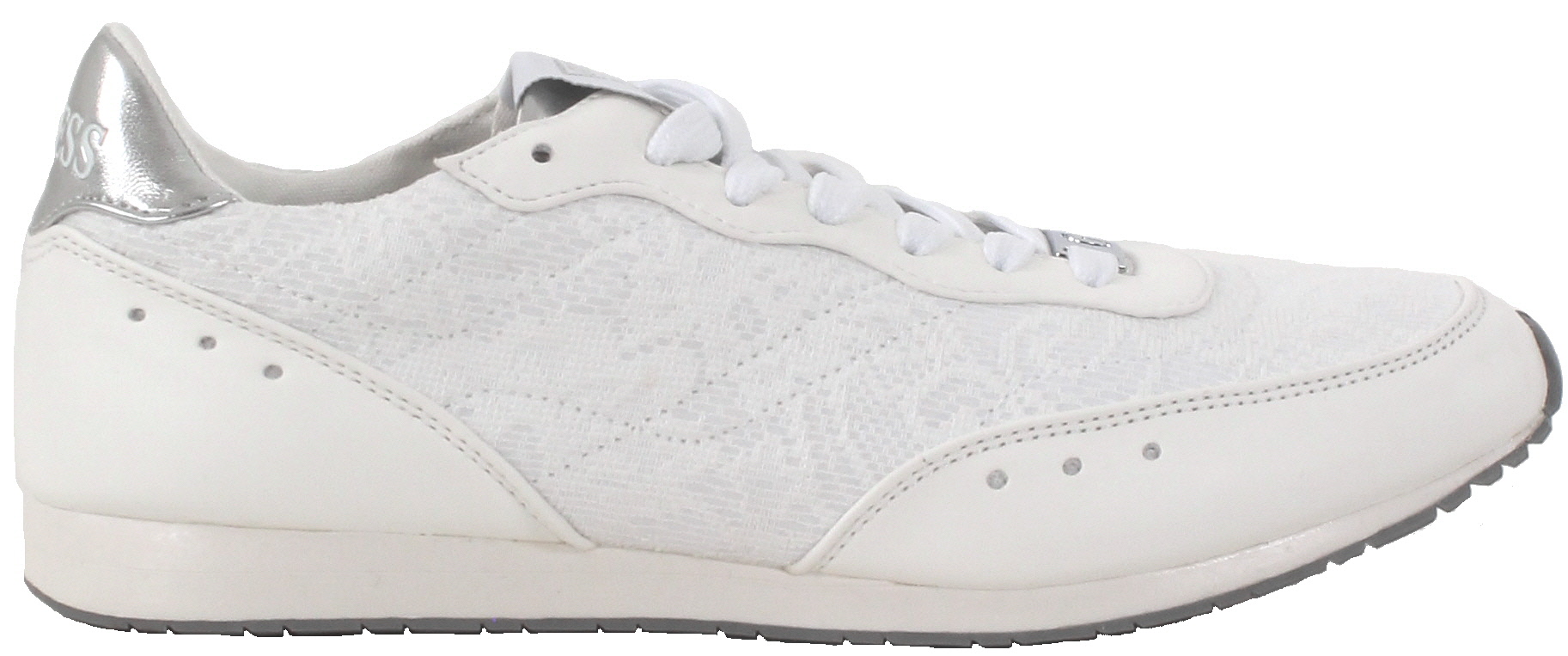 - Silberfarbige Guess-Logos vorne und hinten