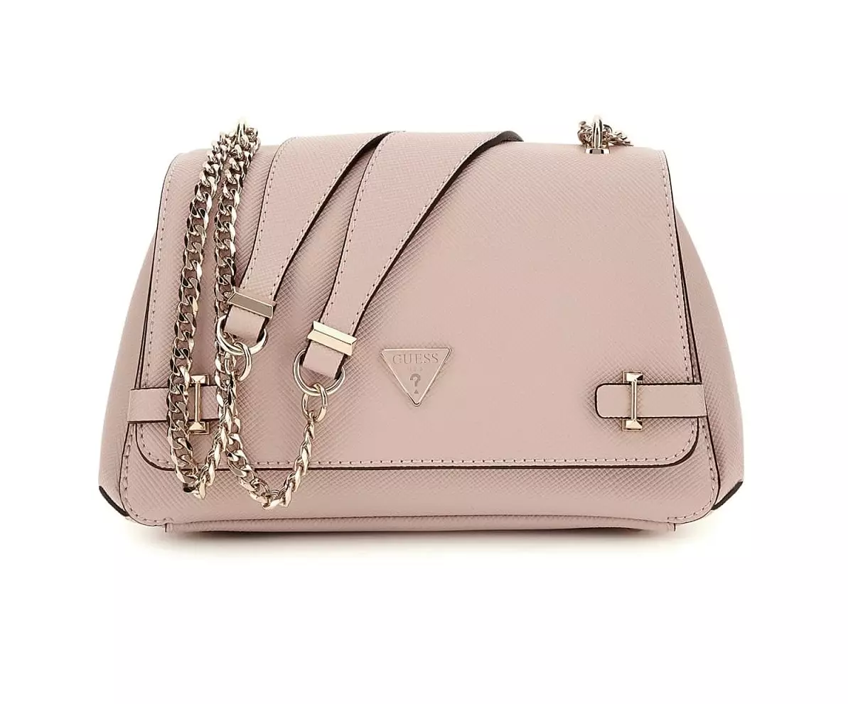 Schöne rosafarbene Guess-Tasche mit einem stilvollen Kettenhenkel, dessen Länge verstellbar ist.