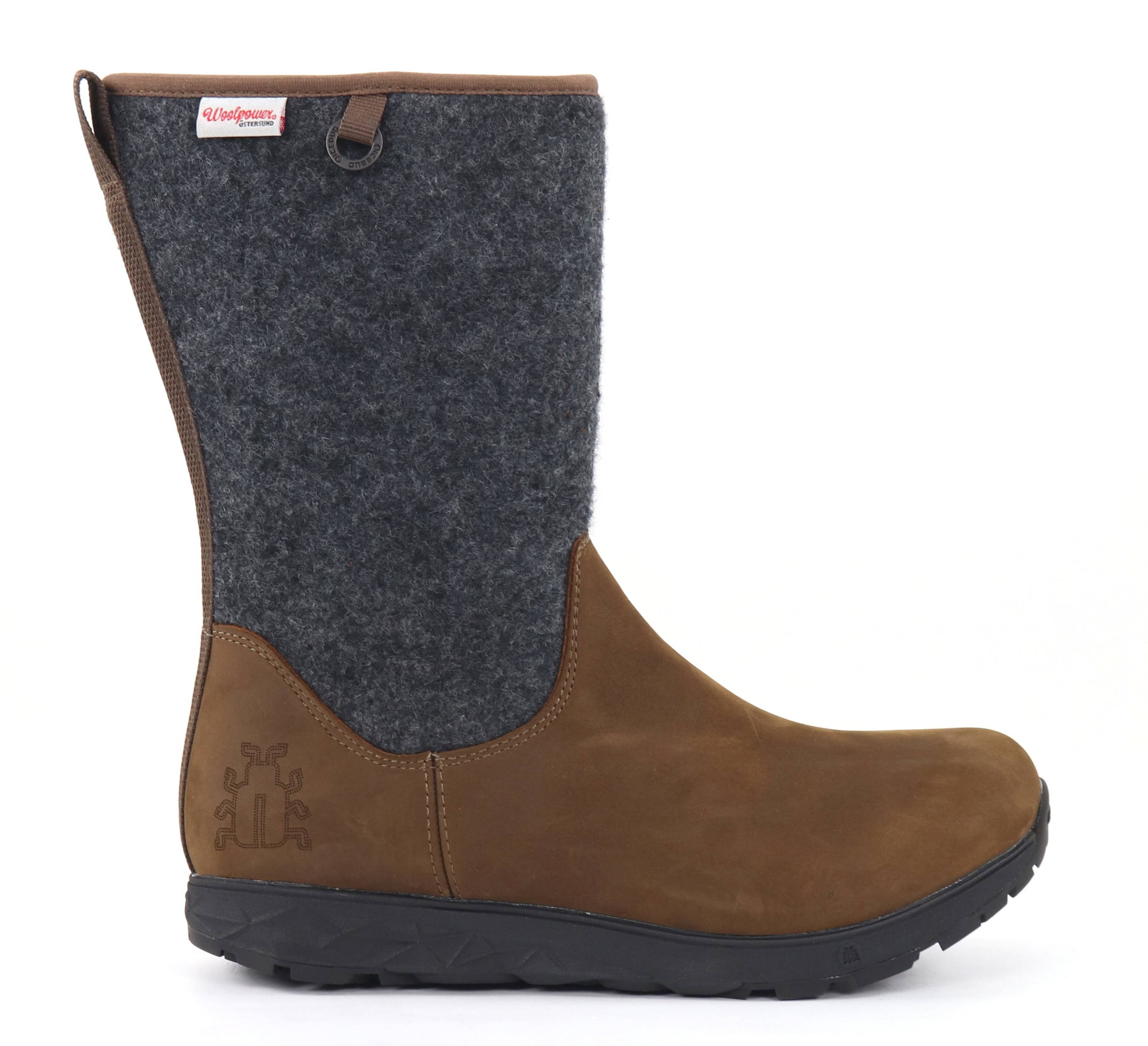 - Wasserabweisender Schaft aus gefilzter Wolle, hergestellt aus DriTan® ölimprägnierten Nubukleder/Woolpower-Reststoffen und Obermaterial aus hochwertigem (LWG) Leder.