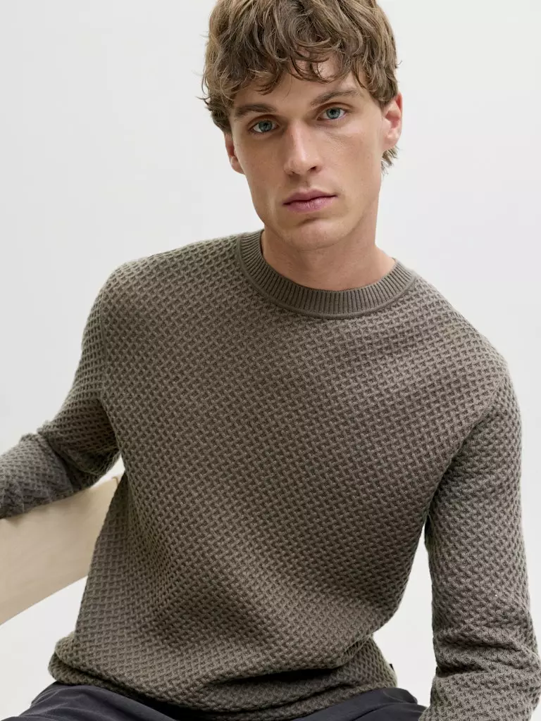 Herren Baumwollpullover aus strukturiertem Strickstoff. Klassisches und minimalistisches Design, das sowohl für den Alltag als auch für legere Anlässe geeignet ist!