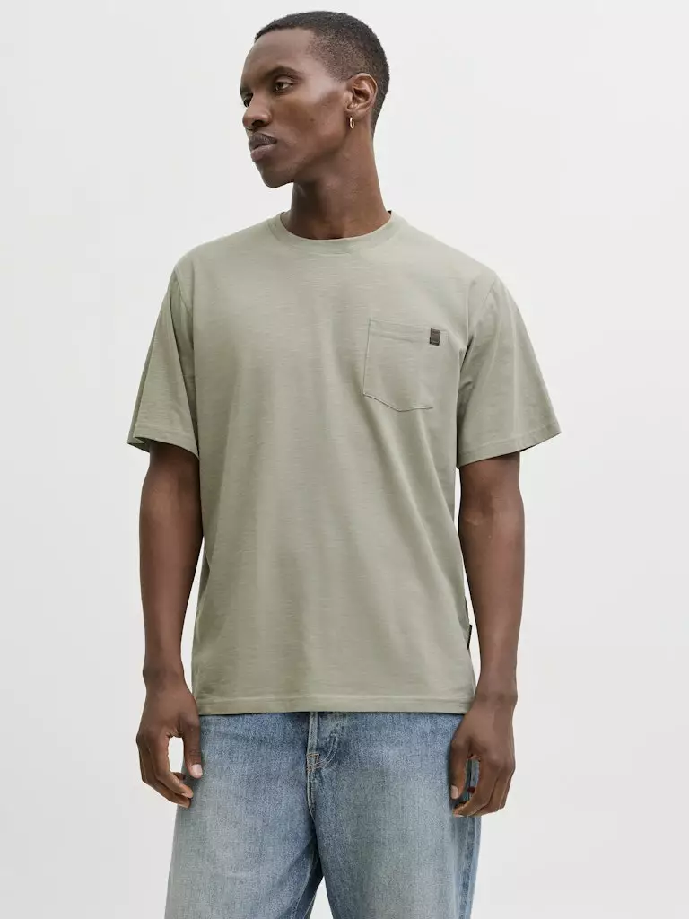 Das Baumwoll-T-Shirt von Jack & Jones ist eine zeitlose und vielseitige Wahl für den Alltag. Der weiche und atmungsaktive Baumwollstoff fühlt sich angenehm auf der Haut an, und die Brusttasche verleiht dem Shirt eine lässige, stilvolle Note.
