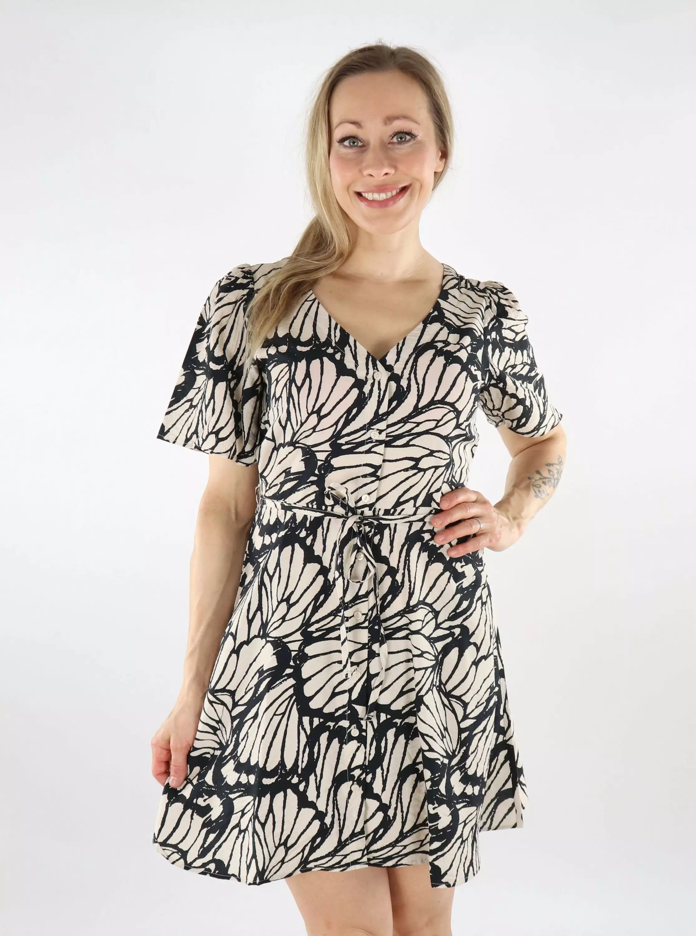 Verleihe deinem Stil mit diesem gemusterten A-linien Kleid von JDY eine Prise Komfort! Der leichte und luftige Stoff fällt wunderschön und die gebundenen Taillenbänder betonen die feminine Silhouette. Perfekt für den Alltag oder eine lässige Feier!