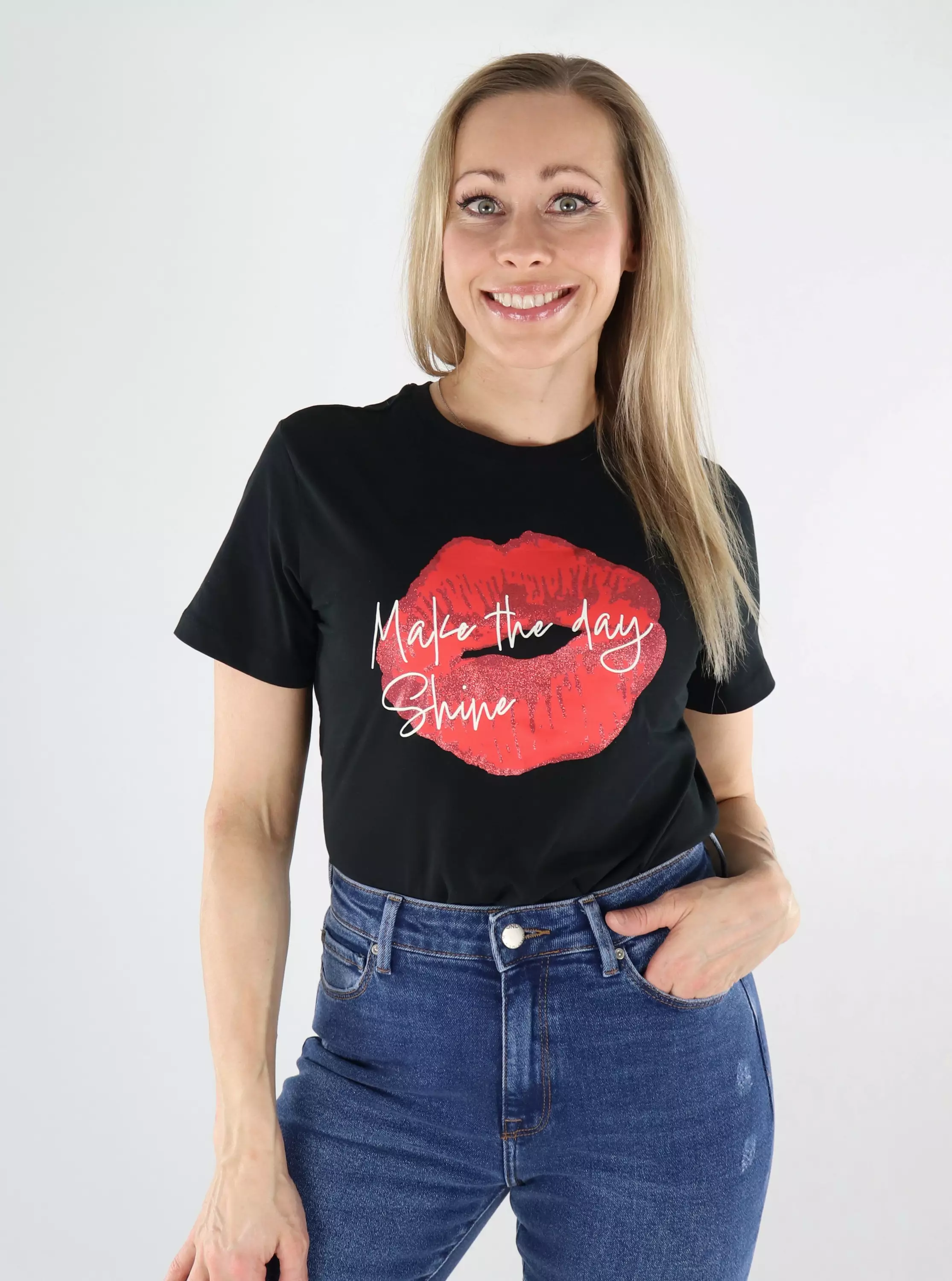 JDY Damen Baumwoll-T-Shirt Print schwarz/Kuss