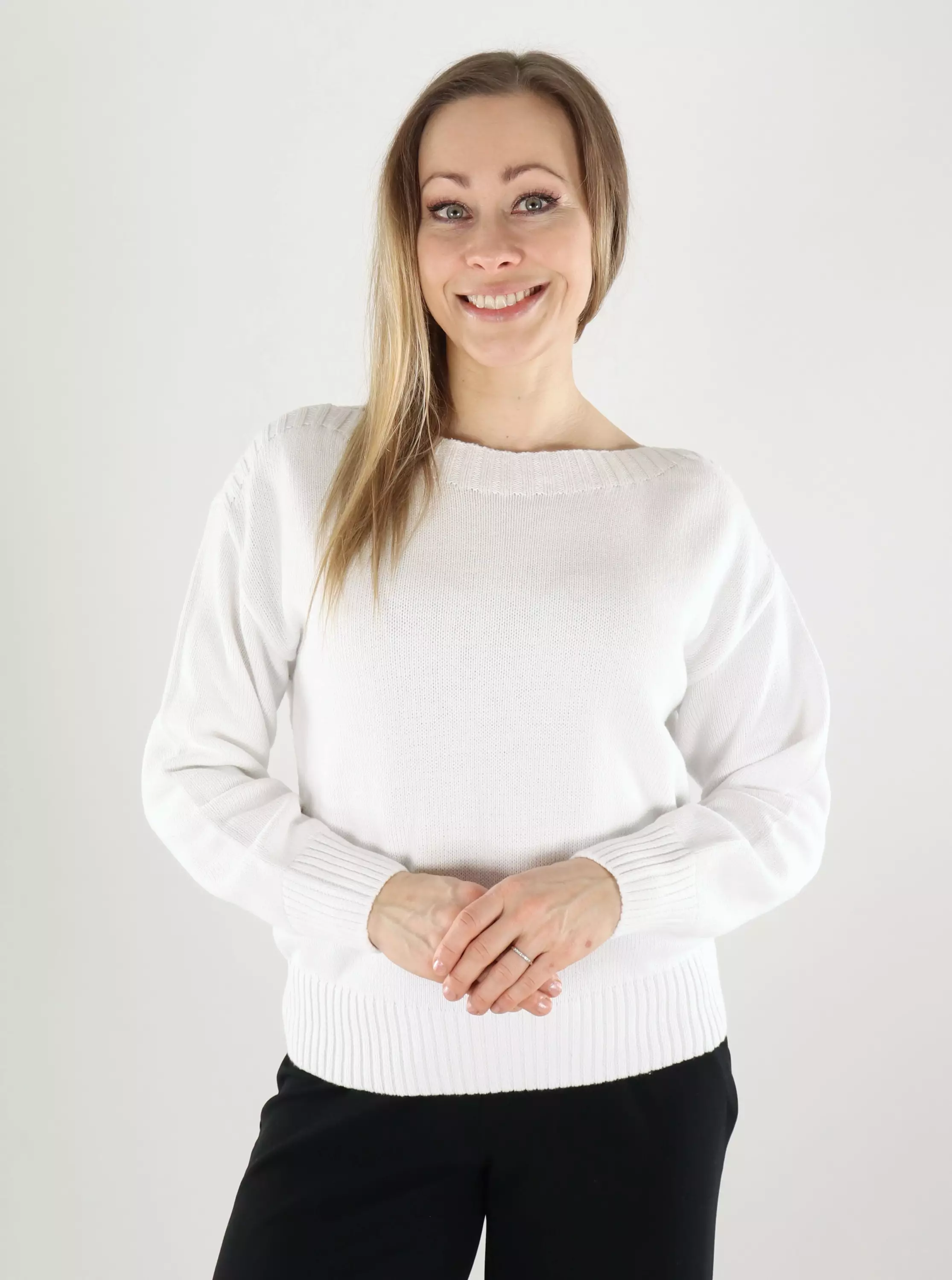 JDY Damen Baumwollpullover mit Bootsausschnitt in strahlendem Weiß