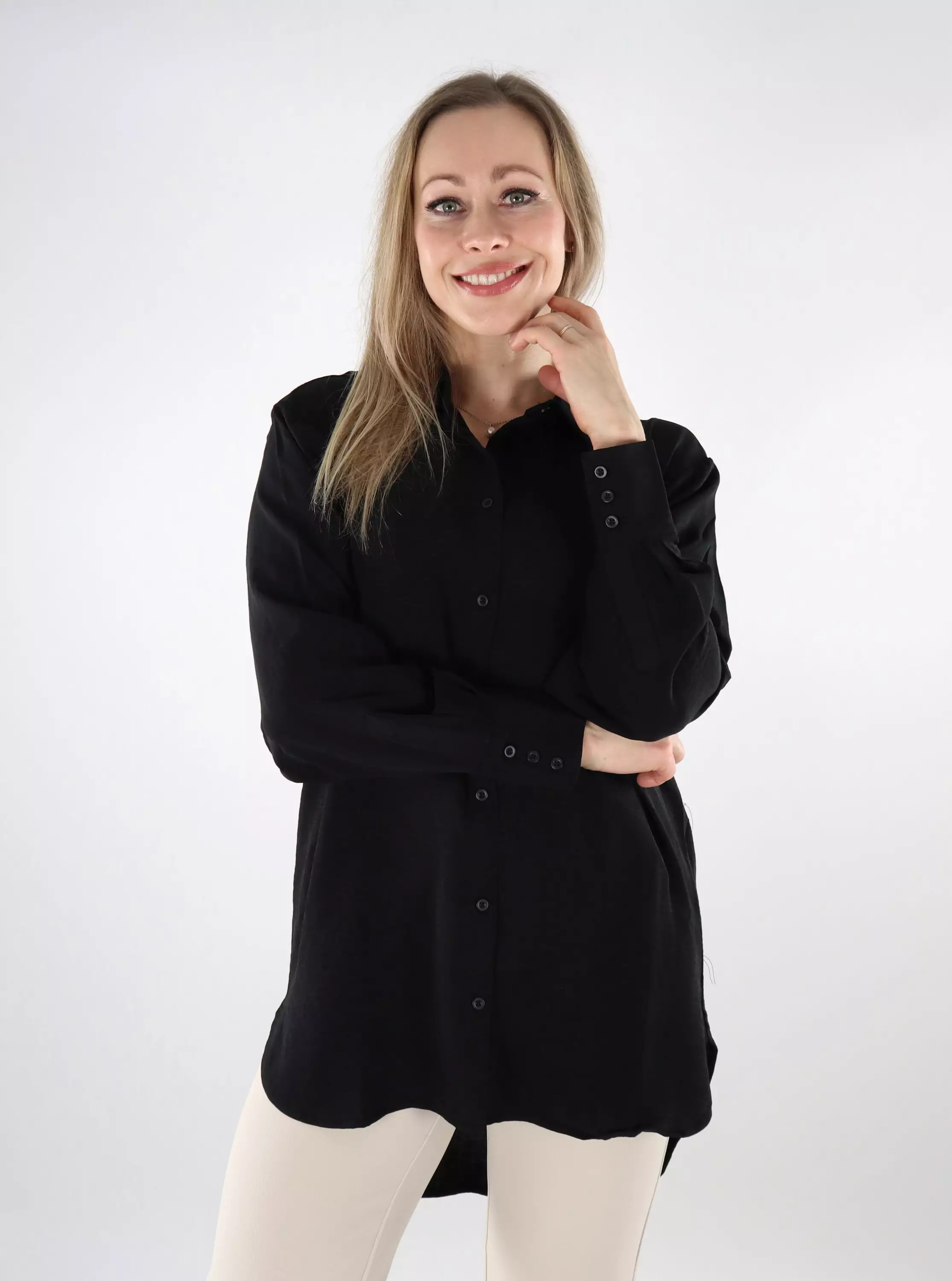 Lässige Bluse mit längerem, abgerundetem Saum. Aus leicht elastischem Material gefertigt!