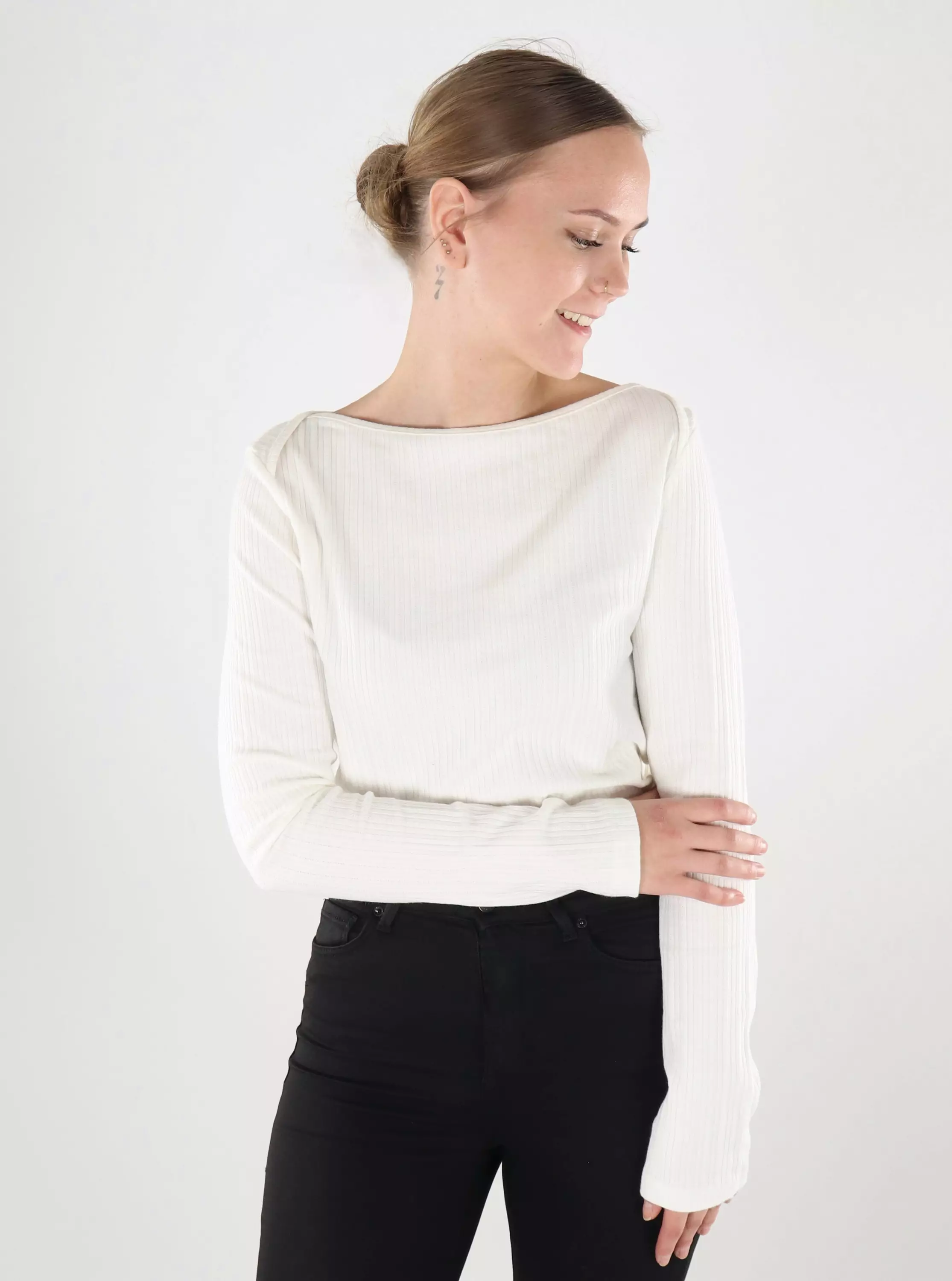 Weiche Ribbed Bluse aus 100% Bio-Baumwolle mit stilvollem Boot-Ausschnitt. Das elastische Material fühlt sich angenehm auf der Haut an!