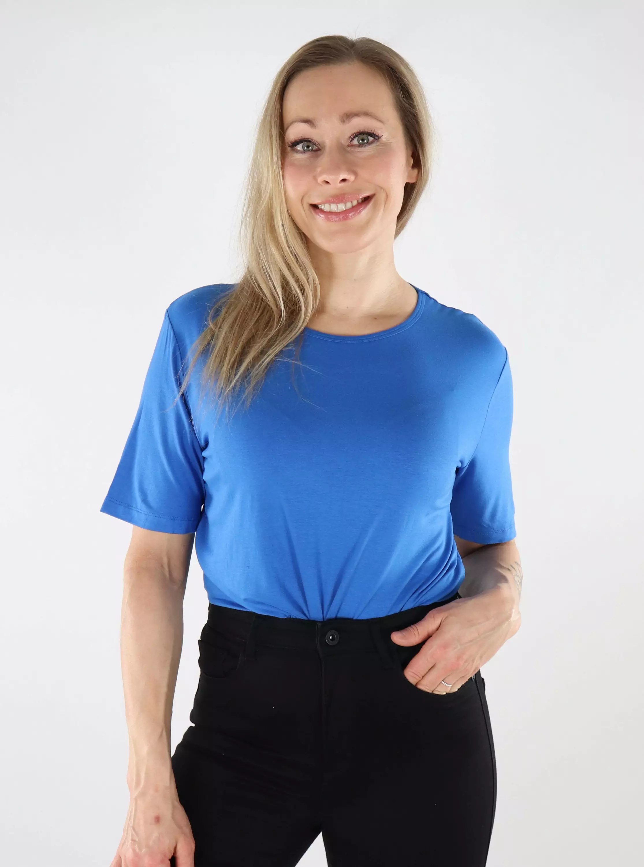 JDY Damen T-Shirt O-Hals kräftiges Blau