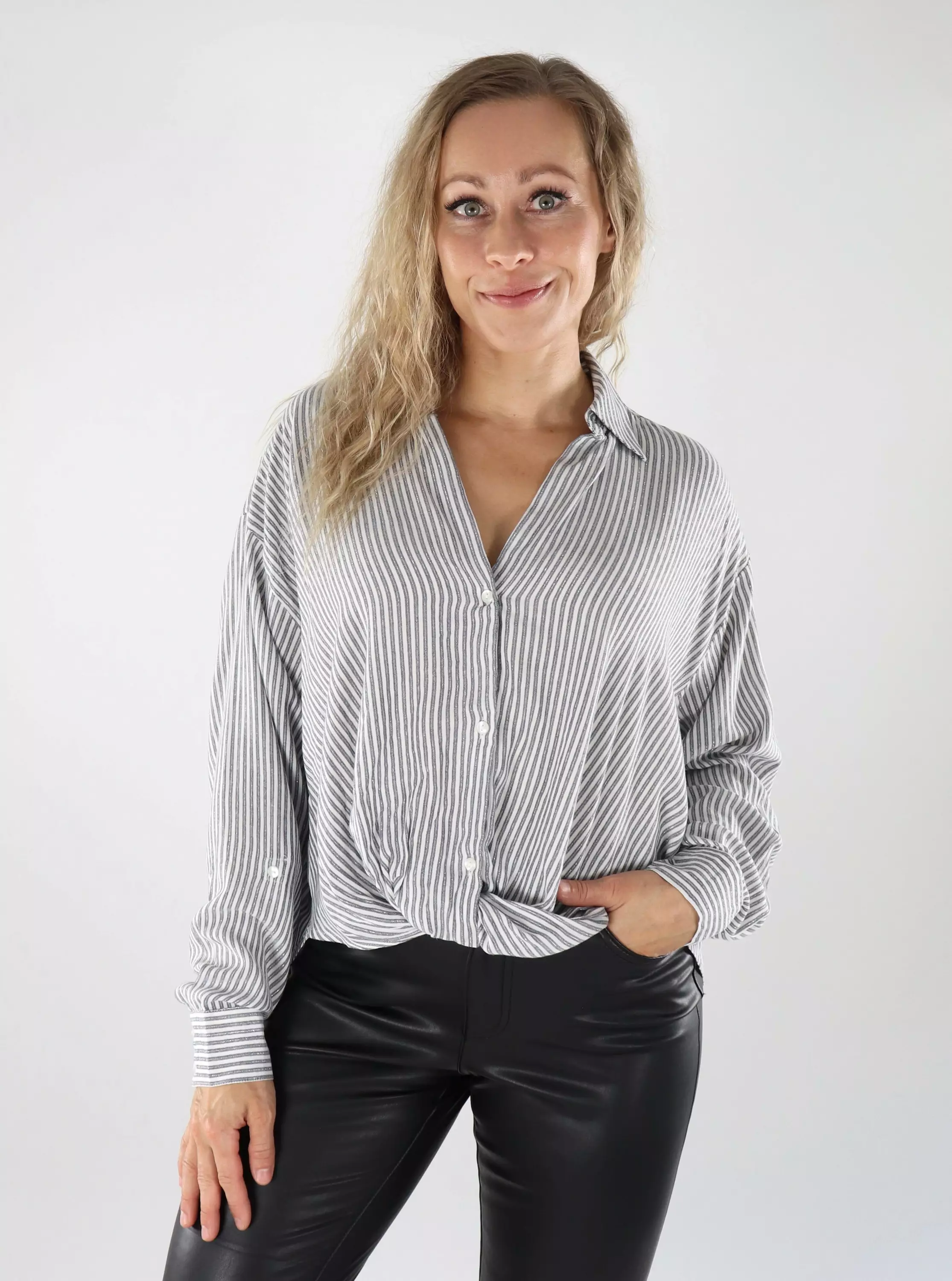 JDY Damenbluse Knot Lurex Wolkentänzer/Schwarz