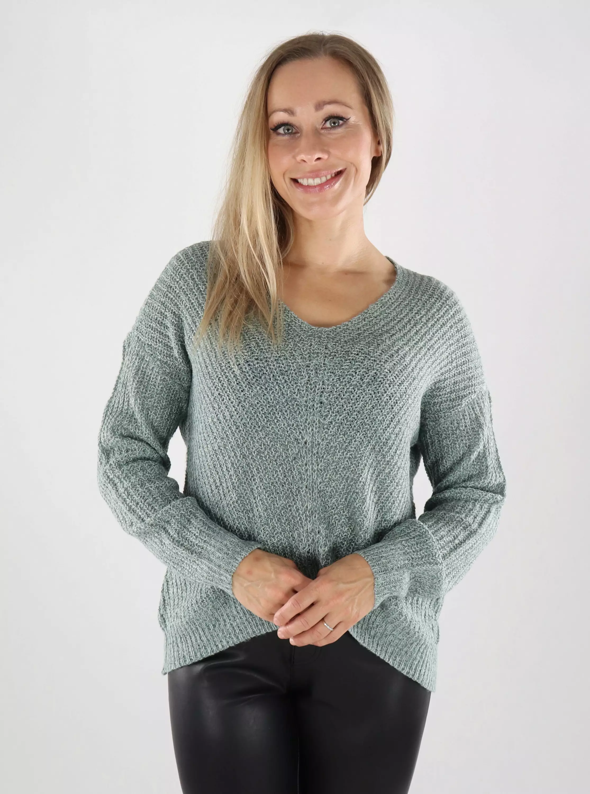 Lässig fallender Pullover mit V-Ausschnitt. Das weiche und dehnbare Material macht dieses Teil zu einem klassischen Alltagsbegleiter!