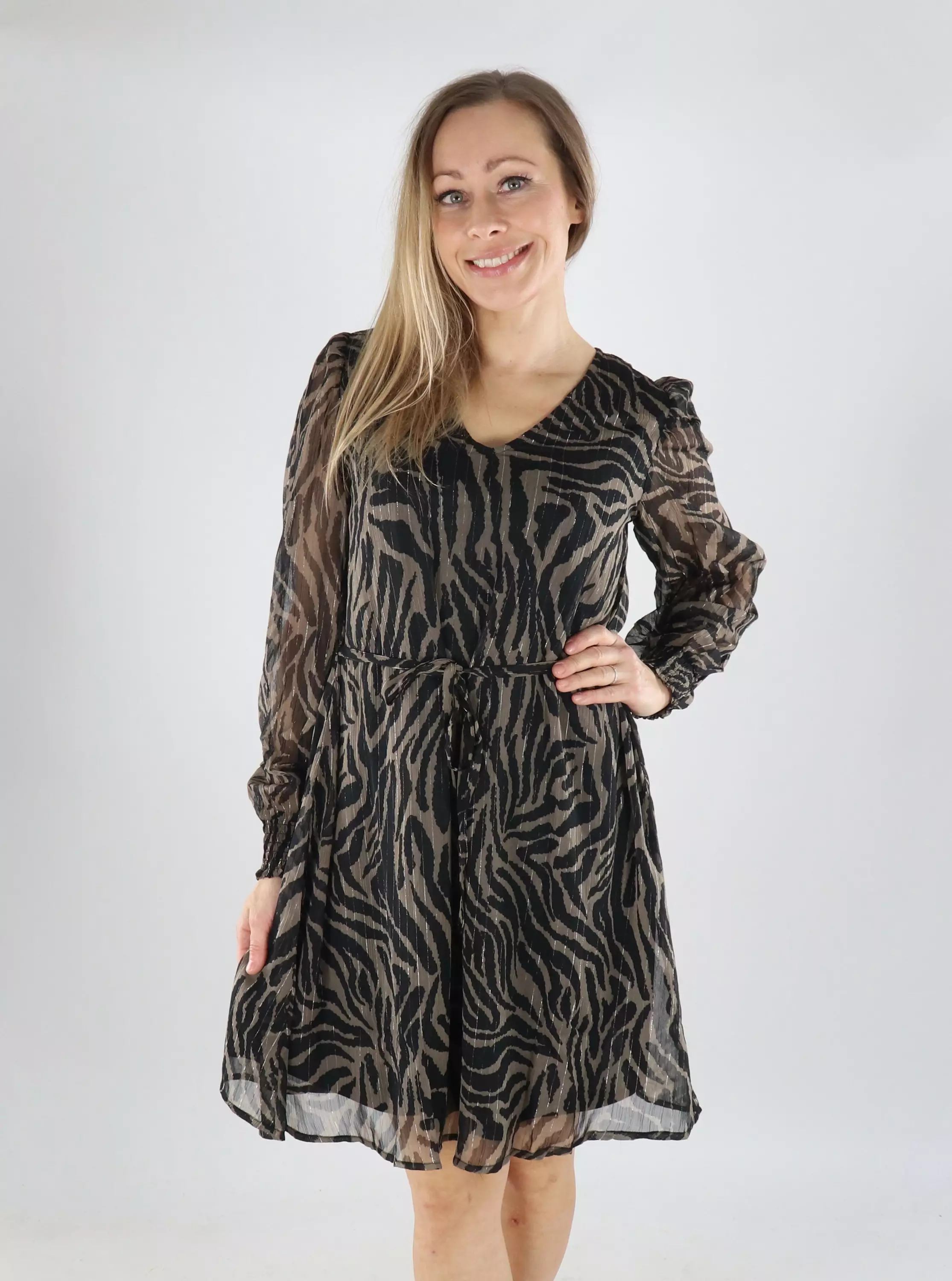 Das wunderschöne zebra-musterte Kleid von JDY ist eine stilvolle und zeitlose Wahl, die einen mutigen Akzent in Ihr Outfit bringt. Der A-Linien-Schnitt schmeichelt der Silhouette.