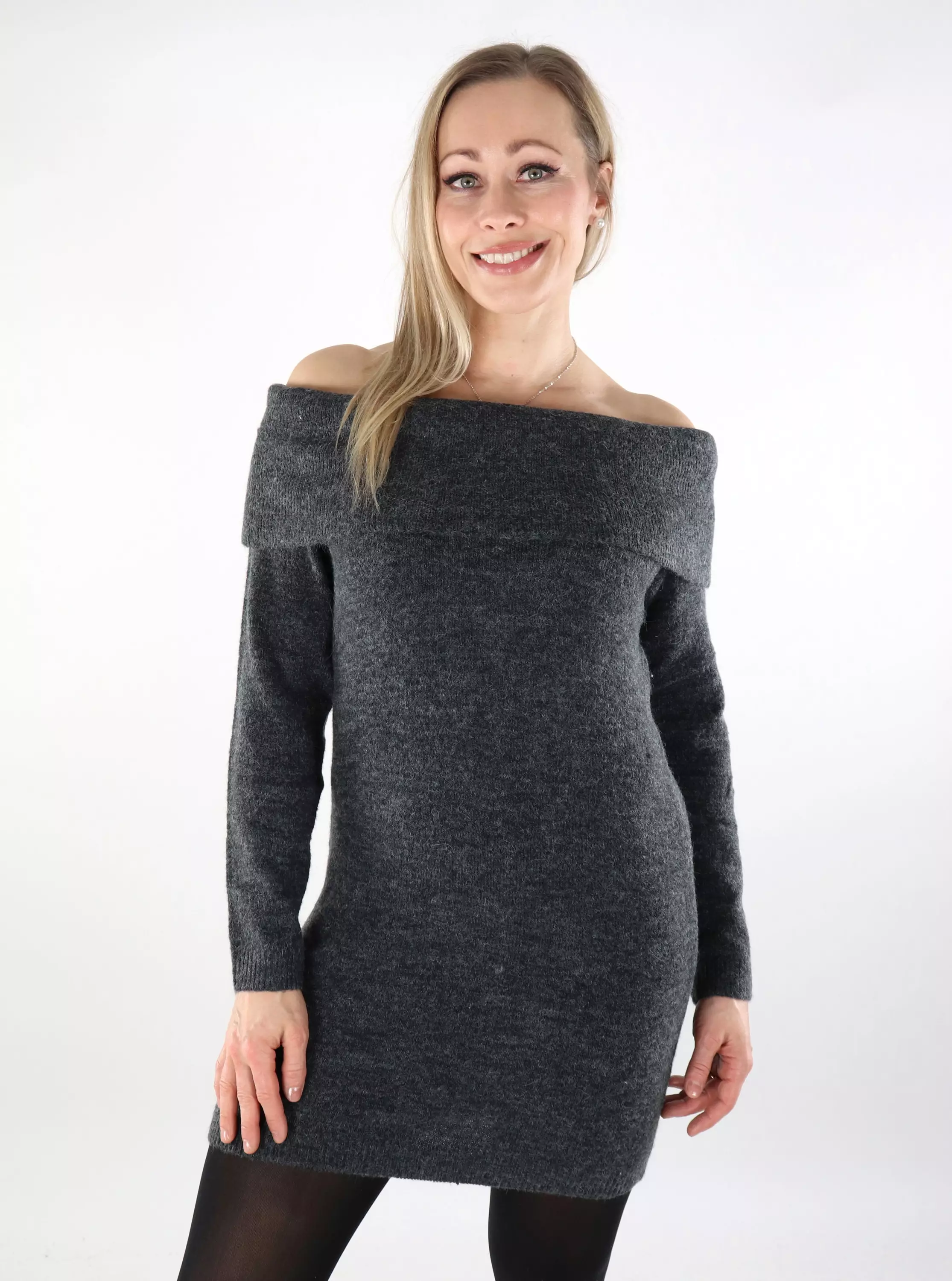 JJXX Off-Shoulder Strickkleid Dunkelgrau