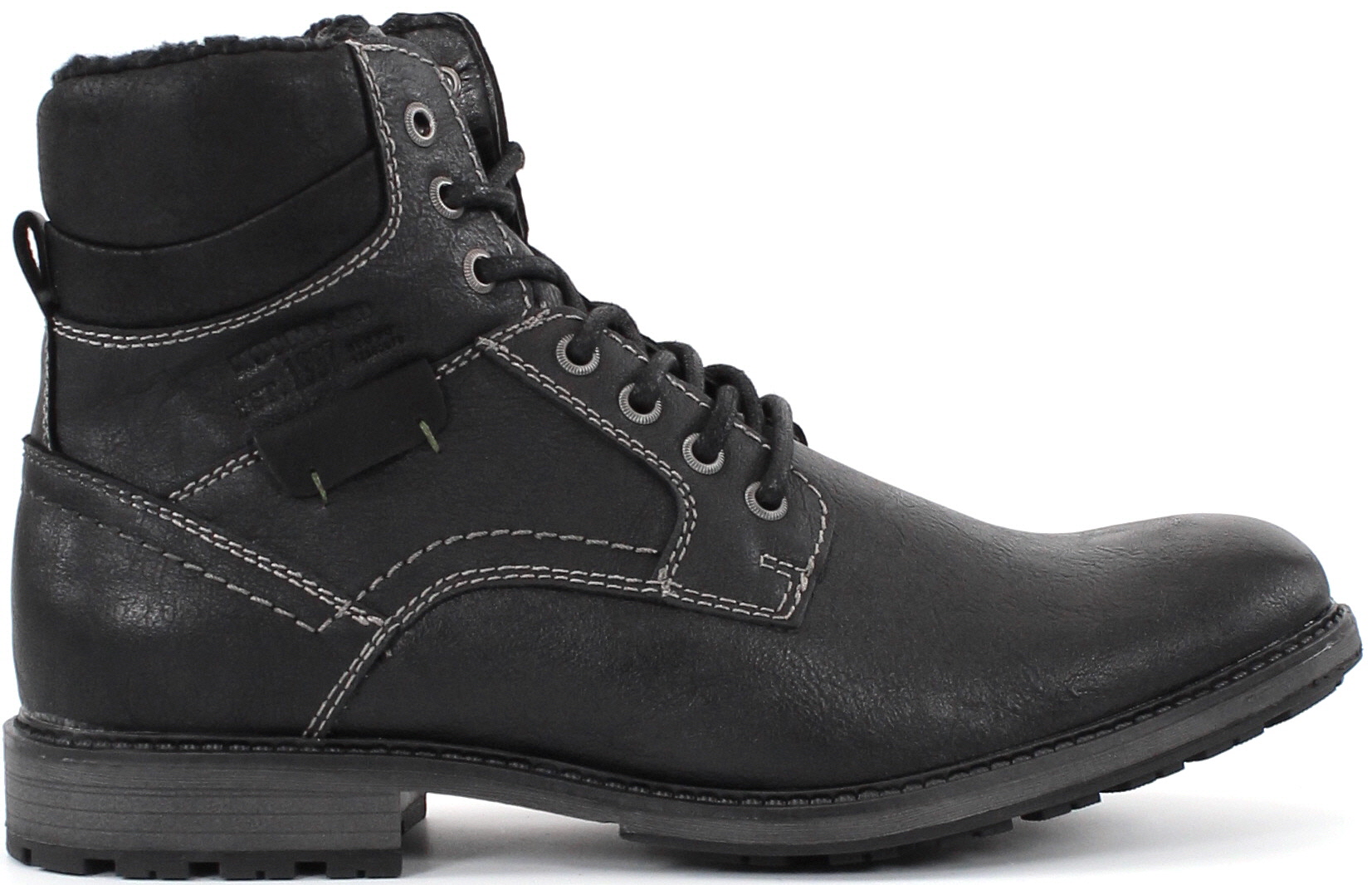 Stylische schwarze Winterstiefel für Herren mit warmem und gemütlichem Futter aus Kunstpelz.