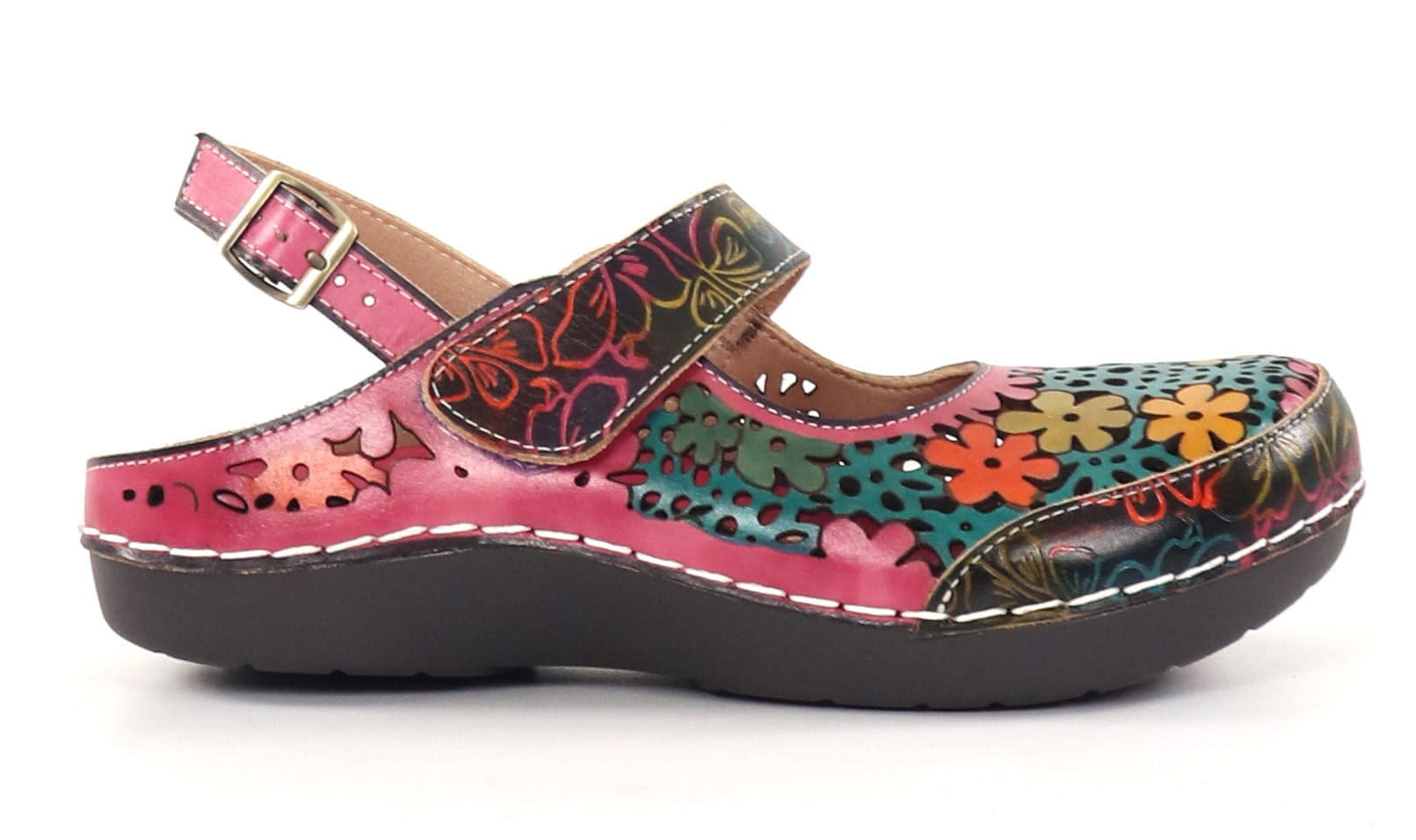 Verschlossene Leder-Sandalen mit wunderschönem Blumendesign.