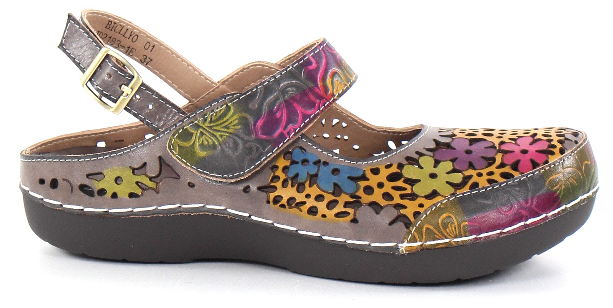 Leder-Sandalen mit stabilen Zehenkappen und Blumenmuster.