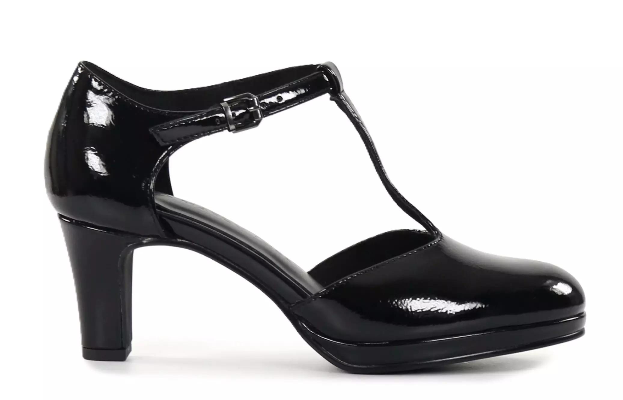 Klassisch elegante, glänzende High Heels mit verstellbaren Riemen um den Knöchel. Hergestellt aus 100% veganen Materialien!