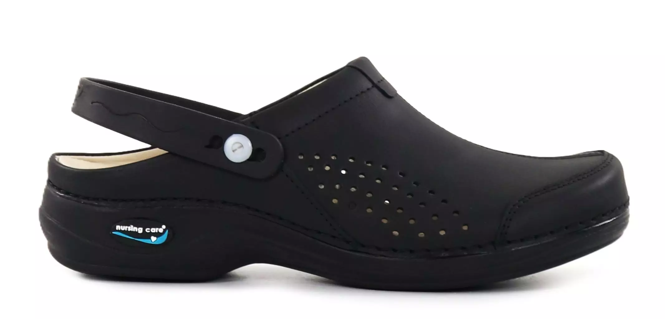 Bequeme und langlebige Arbeitsschuhe aus echtem Leder mit flexibler und atmungsaktiver Struktur. Anatomische Leiste und herausnehmbare Mikrofaser-Einlegesohlen bieten den ganzen Tag Halt, und der verstellbare Riemen sorgt für einen guten Sitz. Rutschfest, antistatisch und maschinenwaschbar.
