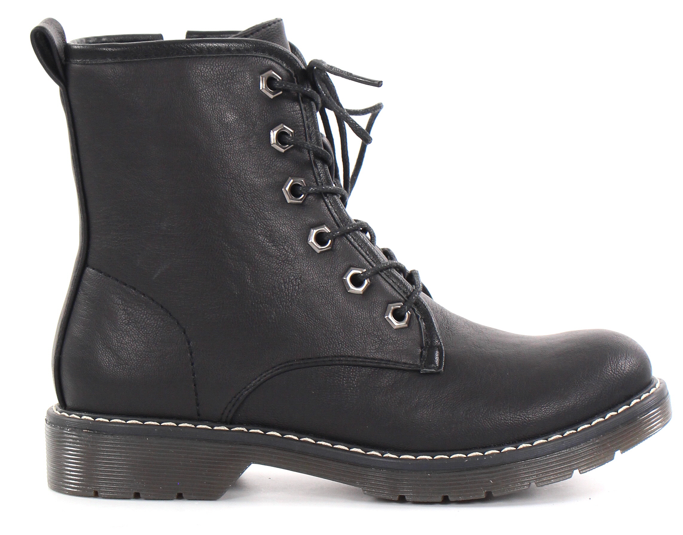 Synthetische Lederstiefeletten mit dünner Fellfütterung.