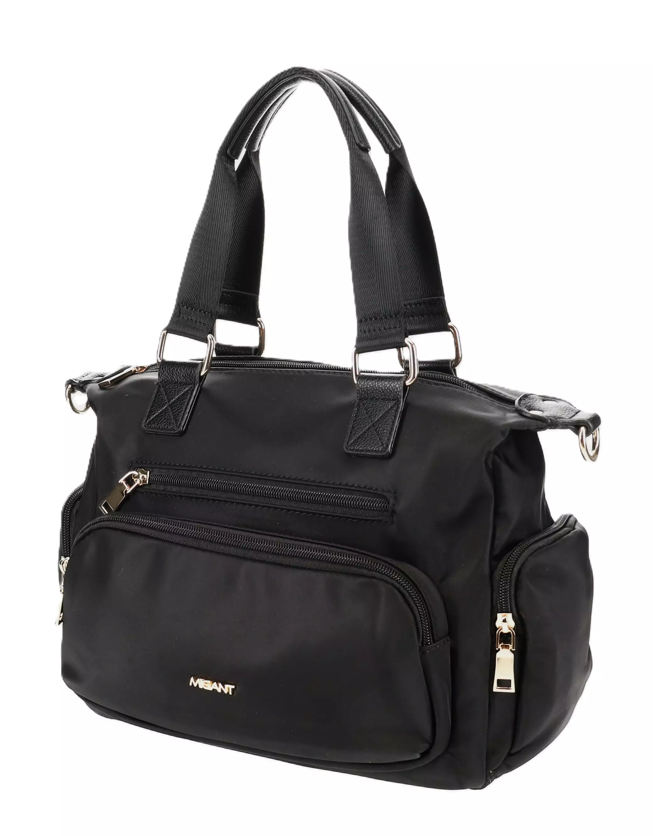 Stylische Migant-Tasche besticht durch ihre goldenen Details! Praktische Tragegriffe und der abnehmbare Schulterriemen bieten vielseitige Tragemöglichkeiten, während mehrere Fächer Ihre Sachen ordentlich aufbewahren.