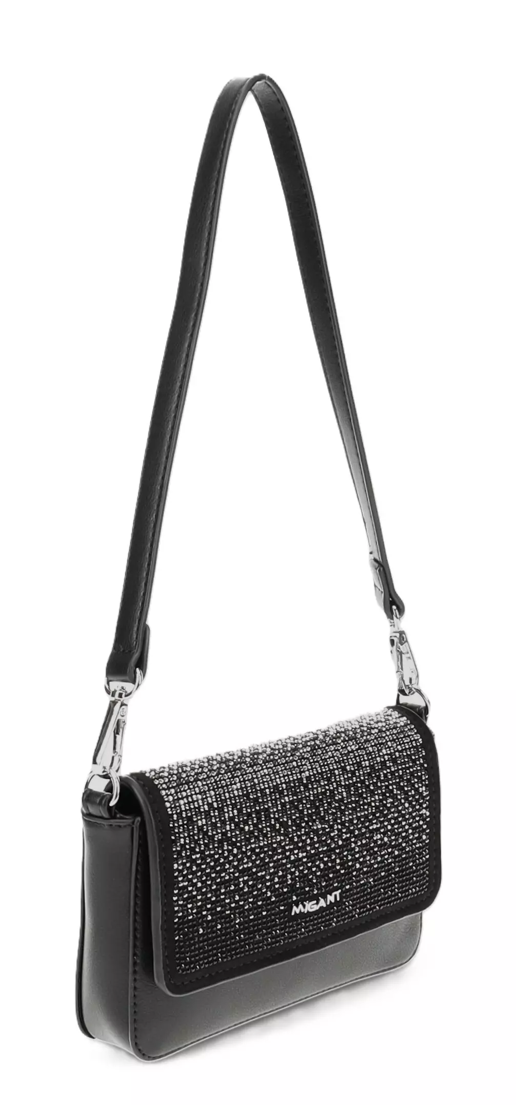 Die elegante Migant-Umhängetasche verleiht deinem Outfit einen Hauch von Glamour! Der vordere Teil der Tasche ist mit funkelnden Strasssteinen verziert, die sie zu einer auffälligen Wahl für festliche Anlässe machen.