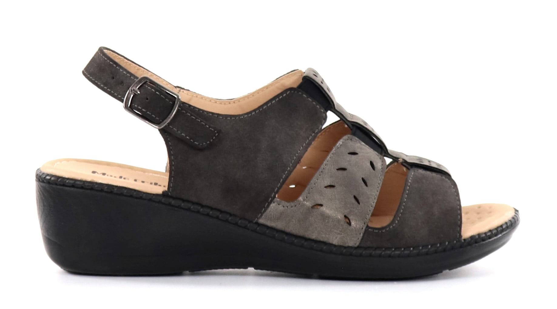 Mode Erikas Sandalen mit Keilabsatz und verstellbarem Knöchelriemen.