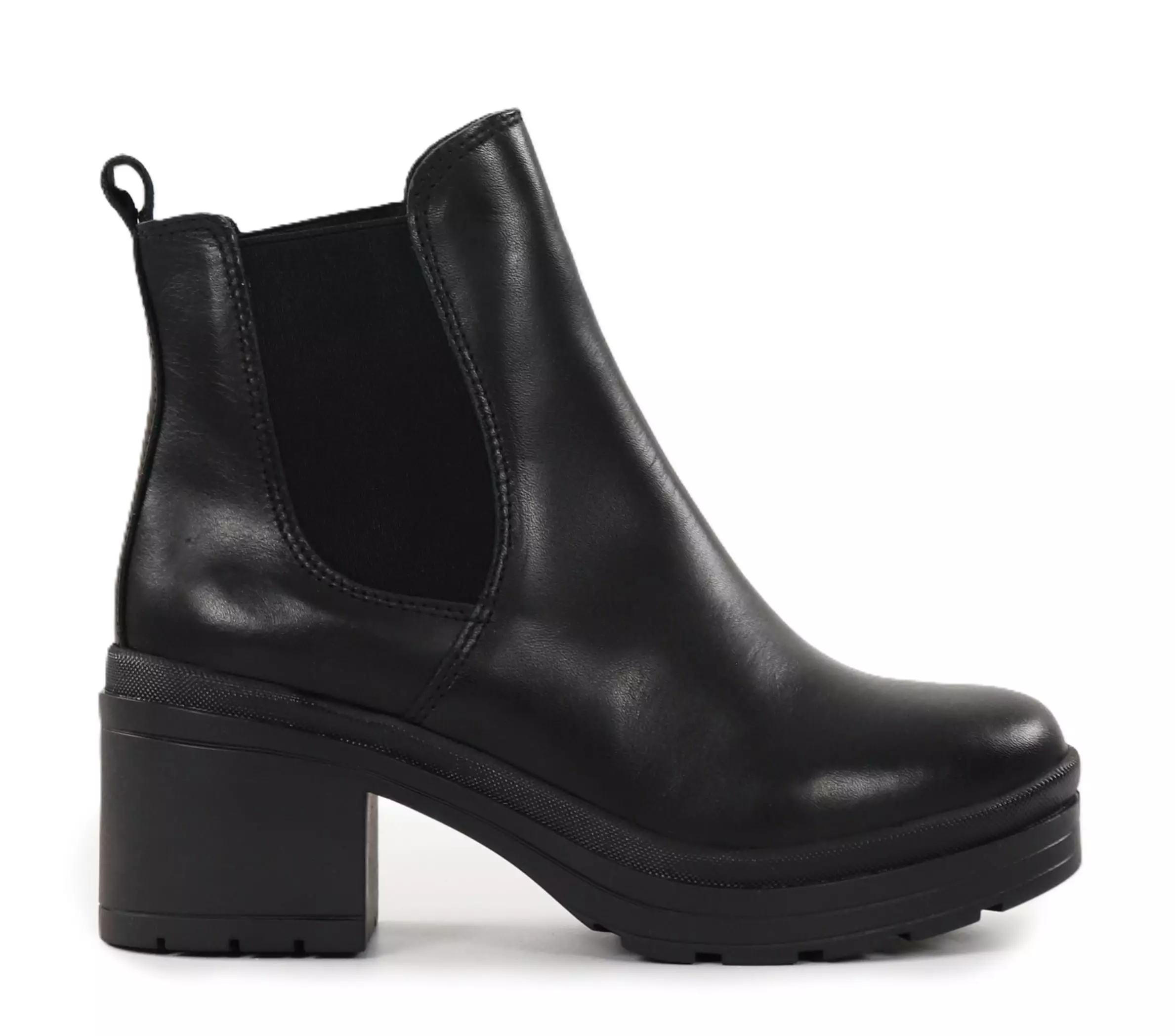 Schwarze Stiefeletten mit stabilen Blockabsätzen, klassischem Design und seitlichen Dehnungsstreifen für einfaches Anziehen. Echtes Leder bietet Qualität und Langlebigkeit. Vielseitige Wahl für den Alltag oder schickere Outfits!