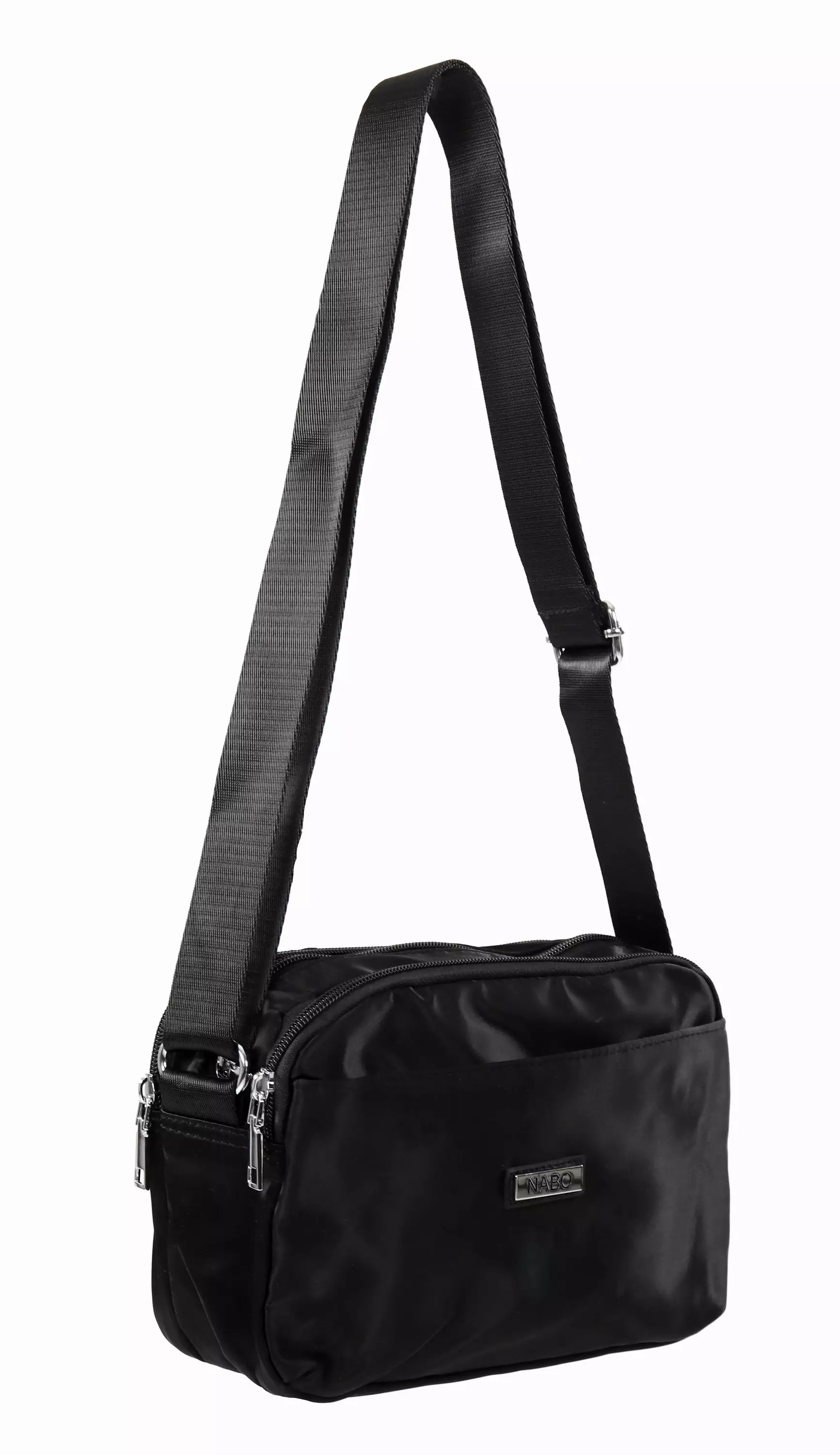Nabo Umhängetasche – Funktionalität und Stil in einem Paket! Mehrere Reißverschlusstaschen halten Ihre Sachen ordentlich, und der verstellbare, breite Trageriemen sorgt für optimalen Tragekomfort.