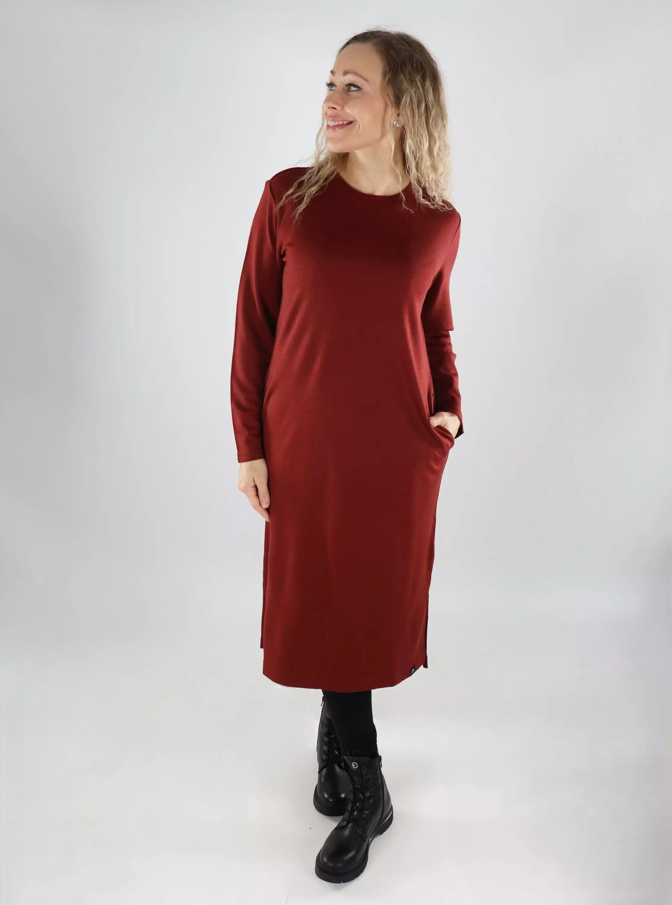 North Outdoor Asta Midikleid Merinowolle Ziegelrot