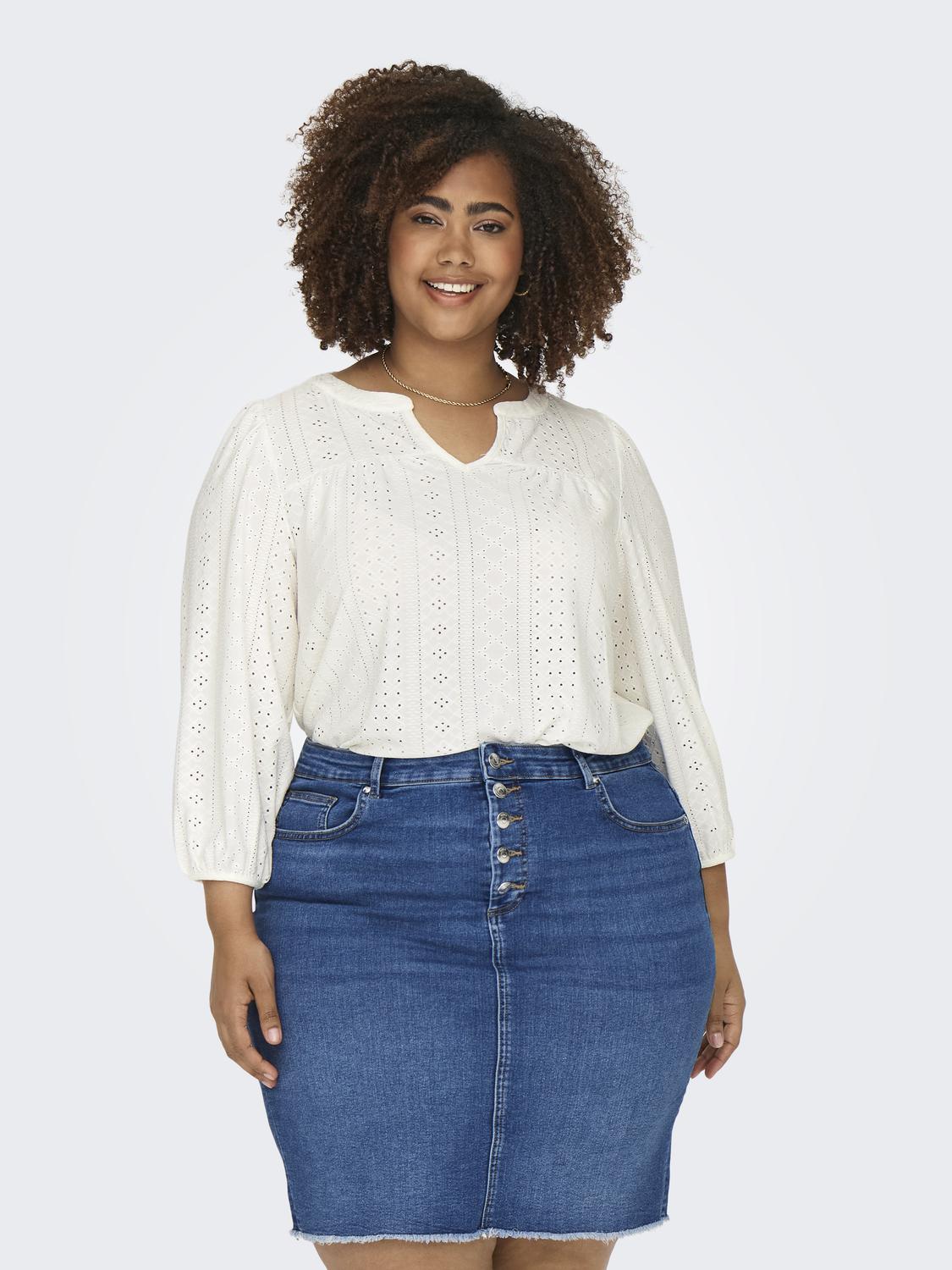 3/4-Ärmel-Shirt aus weichem und dehnbarem Stoff mit Lochmuster.