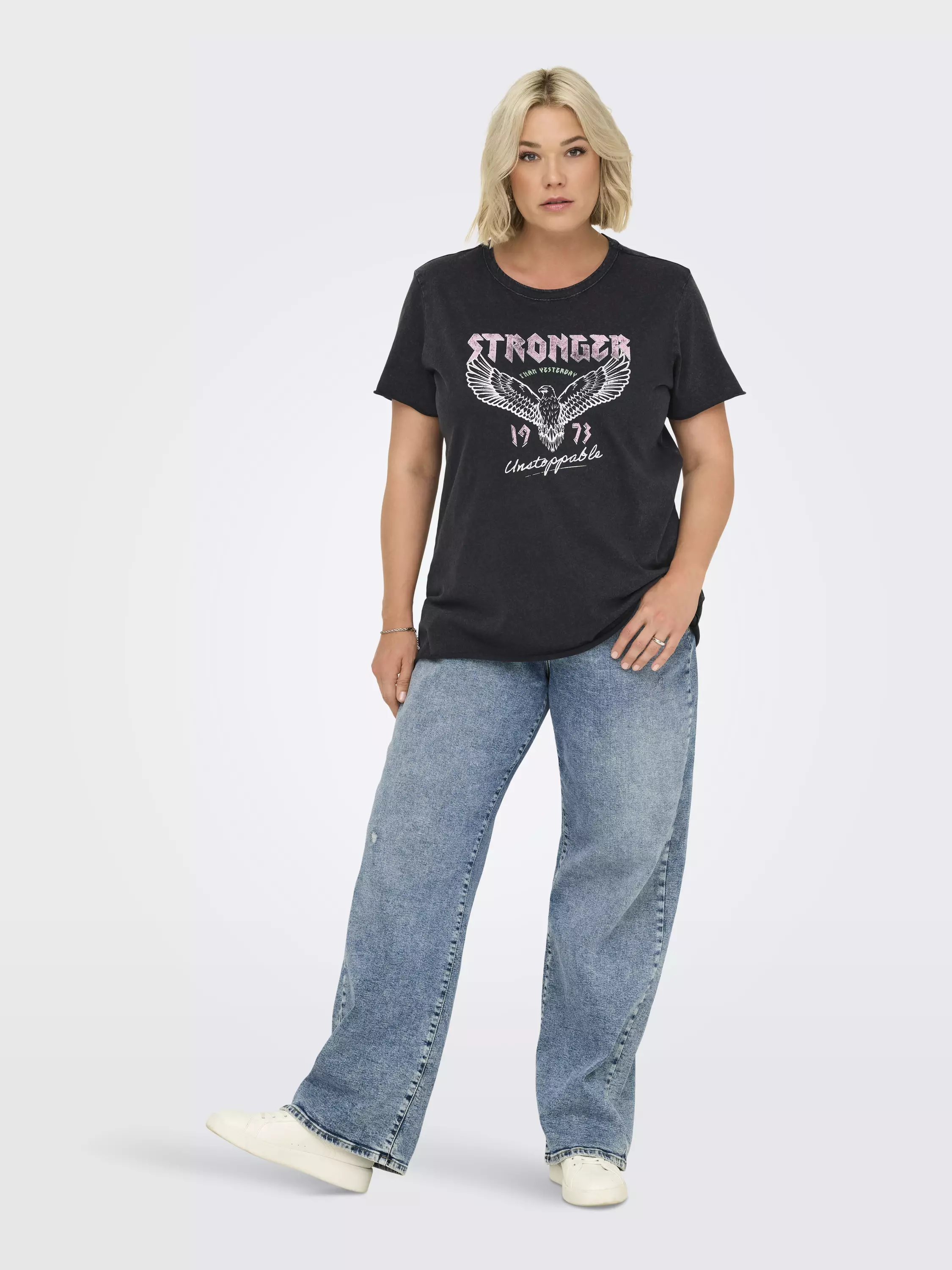 Only Carmakoma Plus Size Bedrucktes T-Shirt Miko Gewaschen schwarz/Glitzer