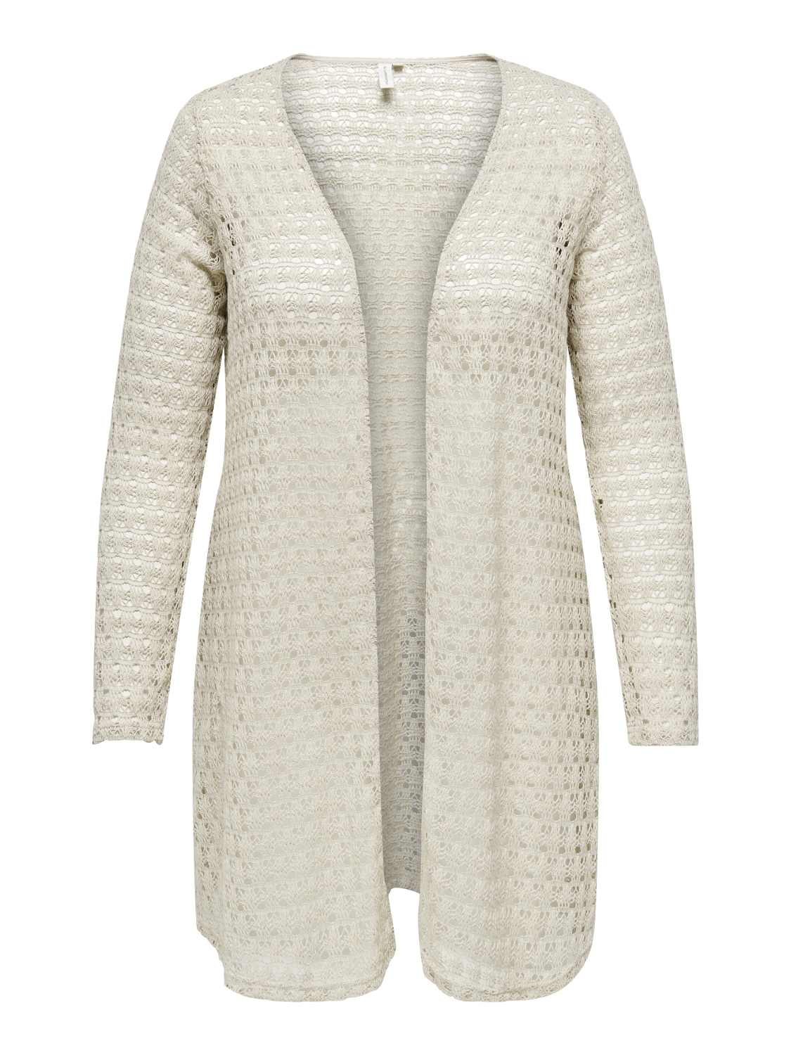 Frauen Plus-Size Cardigan aus leichtem, spitzenmuster Strick. Schlitze an den Seiten.
