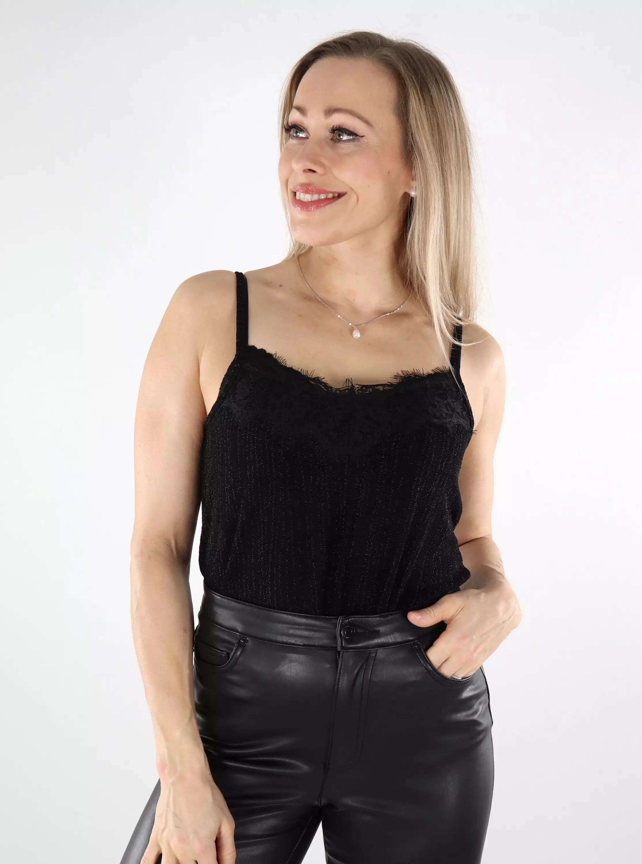 Ein wunderbares Glitzer-Top mit femininer Spitze am Ausschnitt. Das wirklich elastische und leichte Material des Tops erhöht den Komfort!