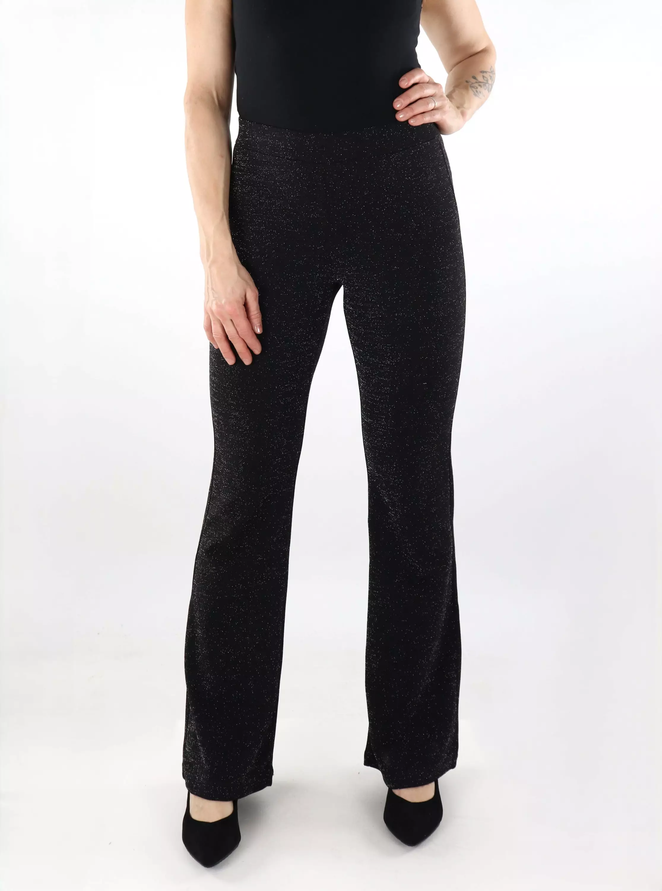 Only Damen Glitzerhose HW Flared schwarz/mit Silber