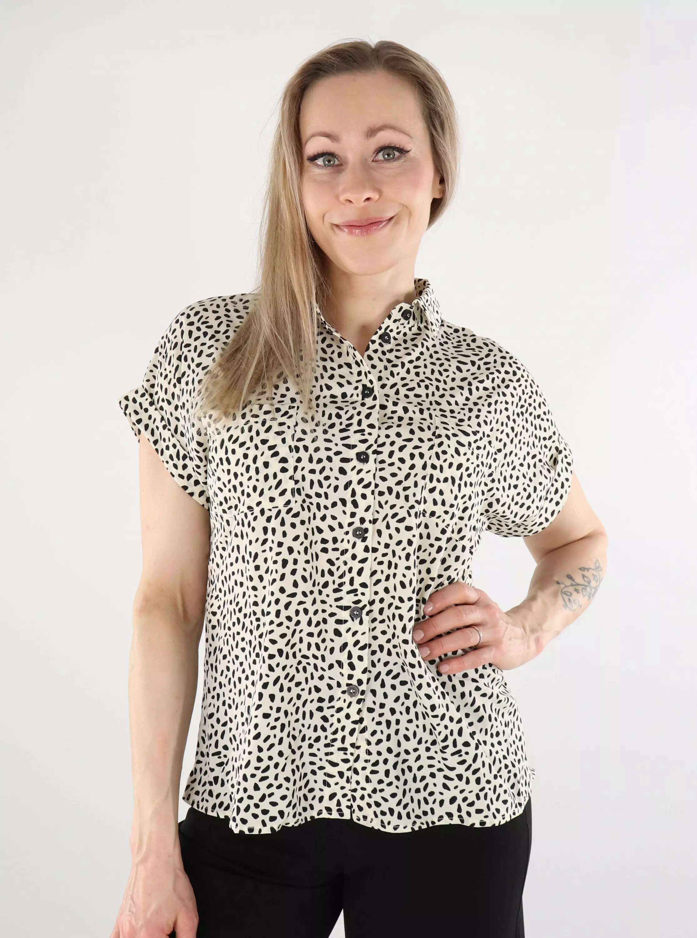 Hochwertiges Damenhemd mit Knöpfen in gepunktetem Design