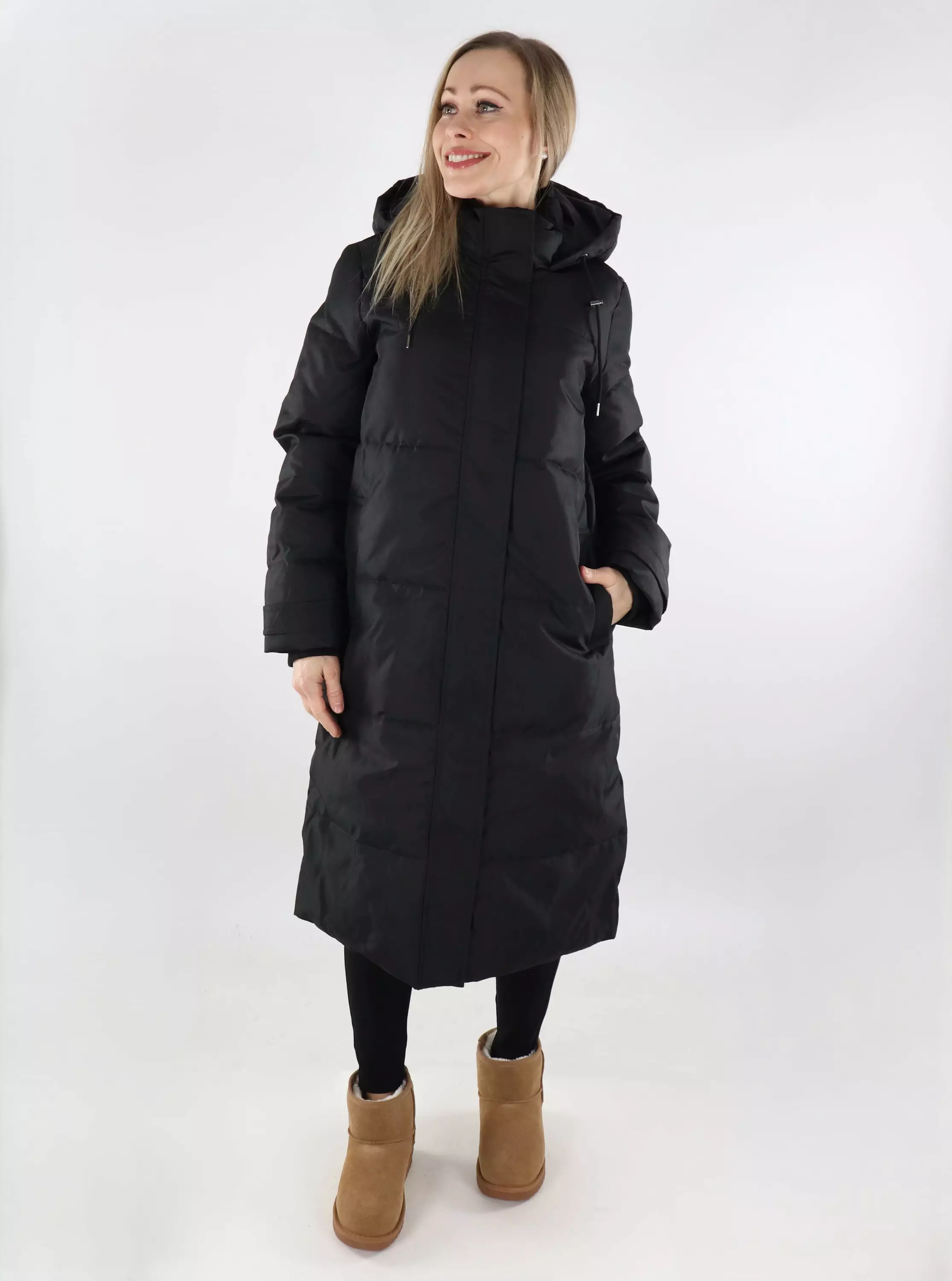 Only Damen langer Wintermantel Puffer Schwarz