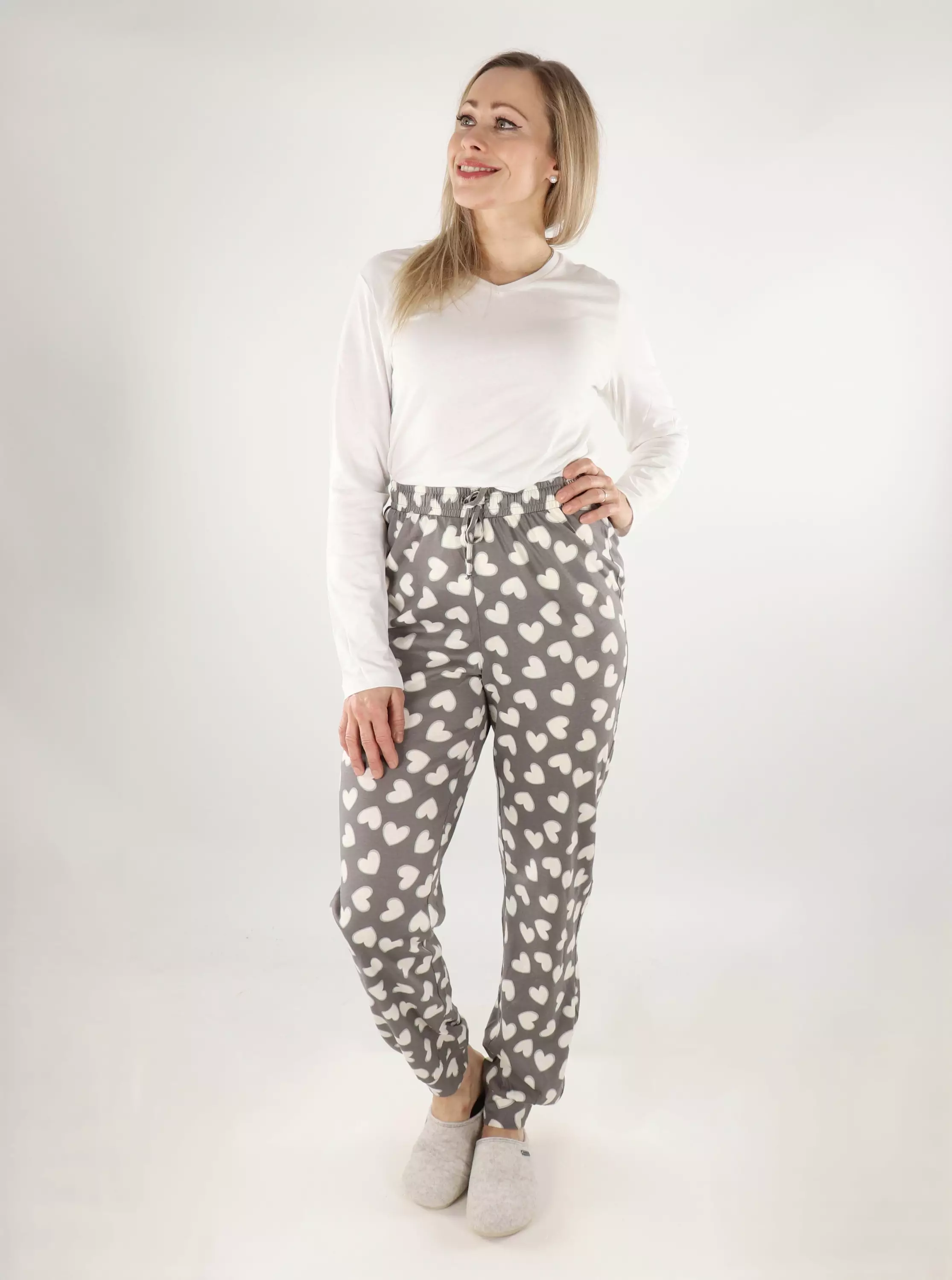 Weiche Baumwollschlafanzüge für Damen mit einfarbigem Oberteil und gemusterten Schlafanzughosen.
