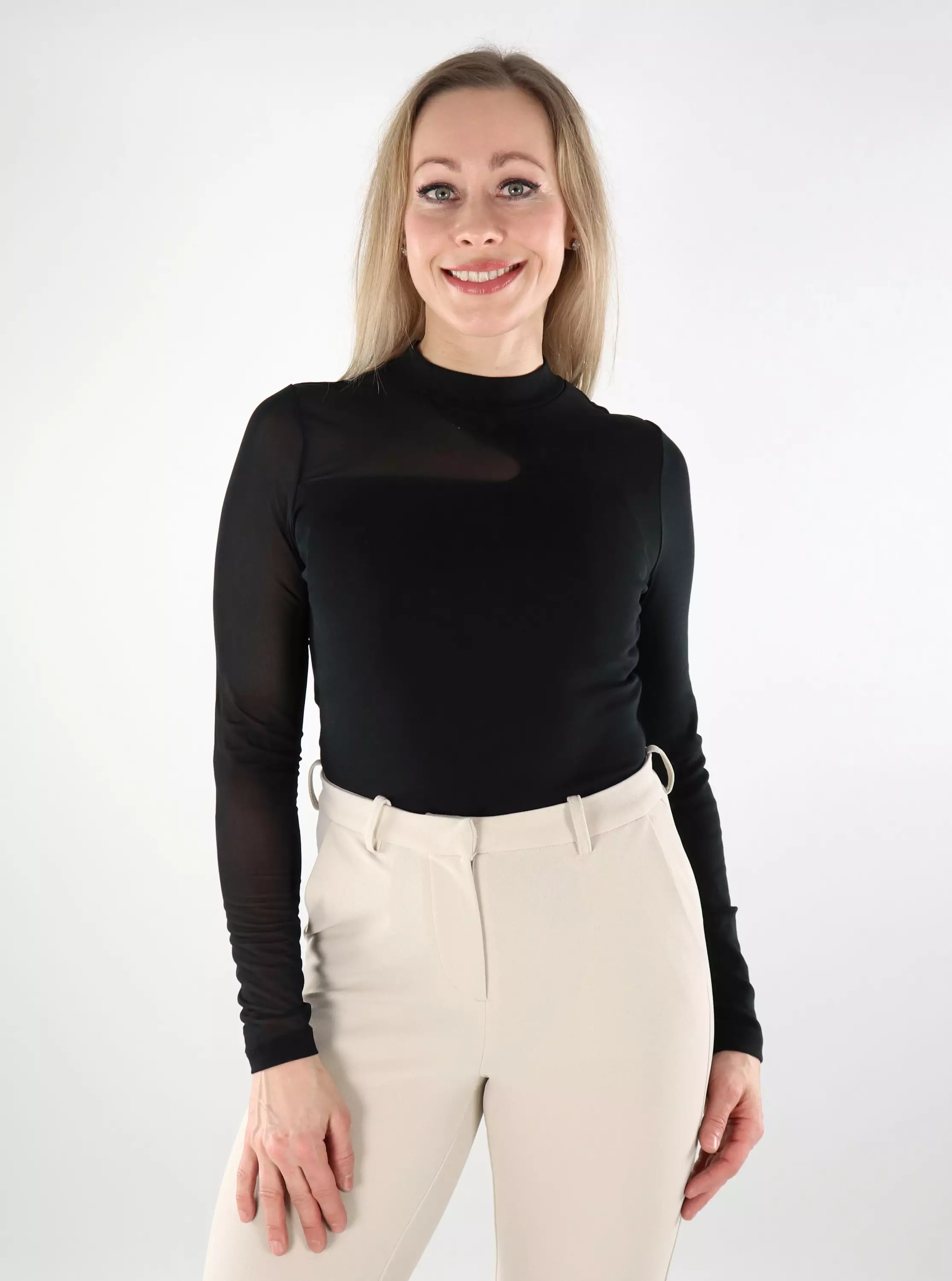Only Damen Shirt Mesh schwarz/unifarbener Mesh
